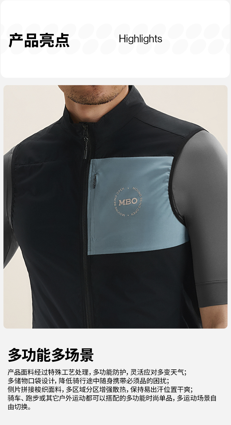 MBO男子骑行马甲CLV32A 25年四季款时尚多功能防风马甲