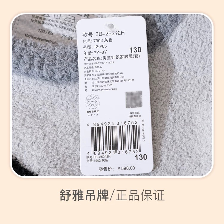 【半边绒国宝】SCHIESSER舒雅童装男童长袖长裤家居套装半边绒纤维柔软 舒适 温暖细腻 3B/25242H