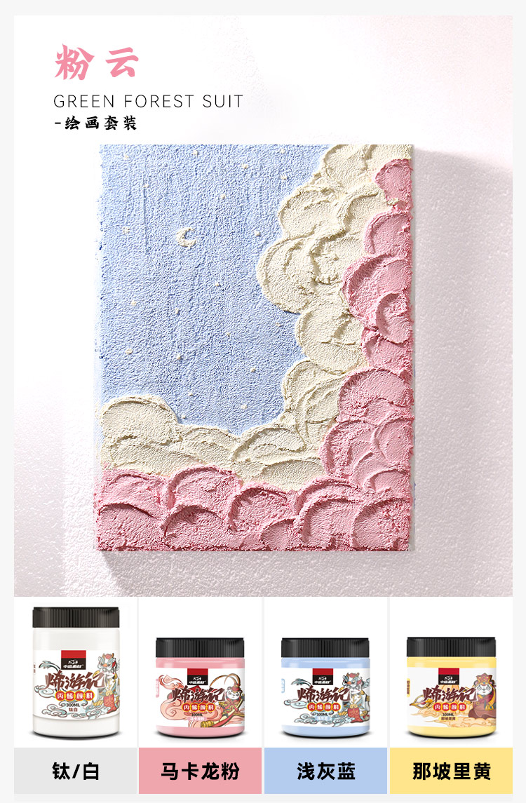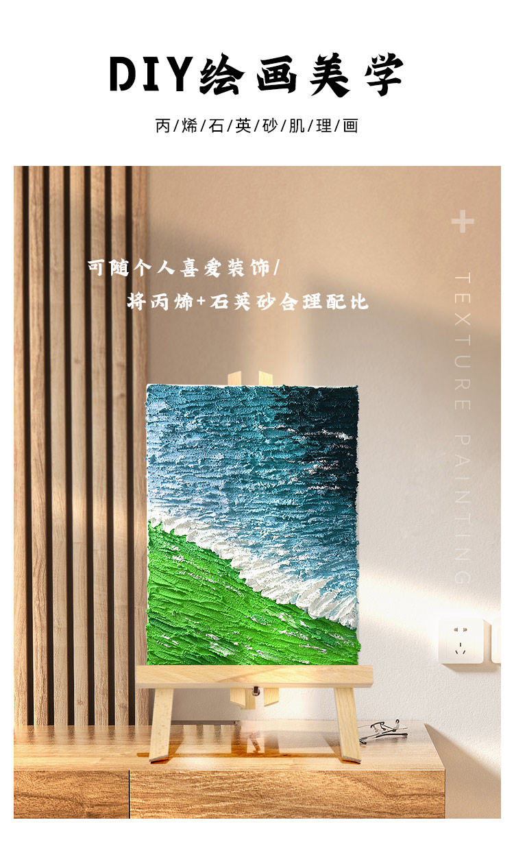 石英砂丙烯肌理画颜料防水防晒手工diy工具材料包套装美术生装饰画褶皱立体感80目细沙岩砂硅质网红ins沙子画