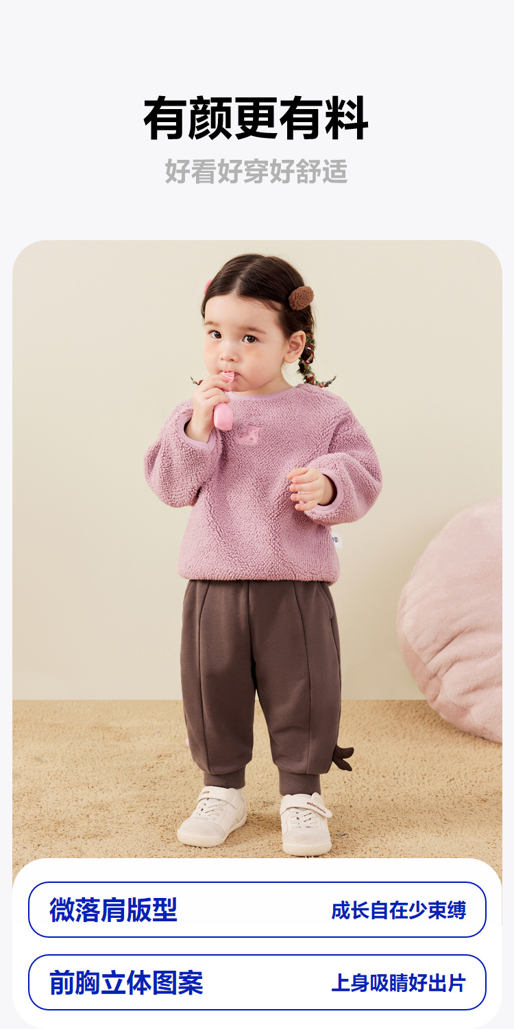 【双面绒卫衣】迷你巴拉男女童秋新品柔软百搭长袖上衣