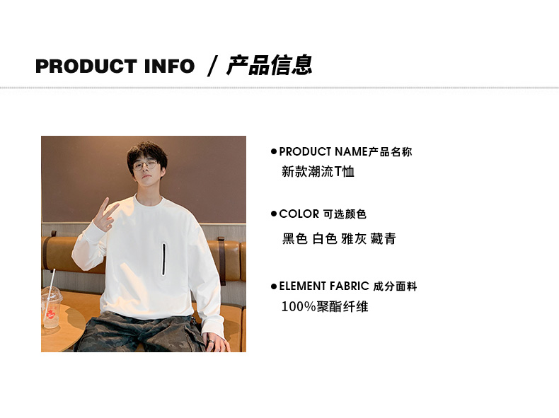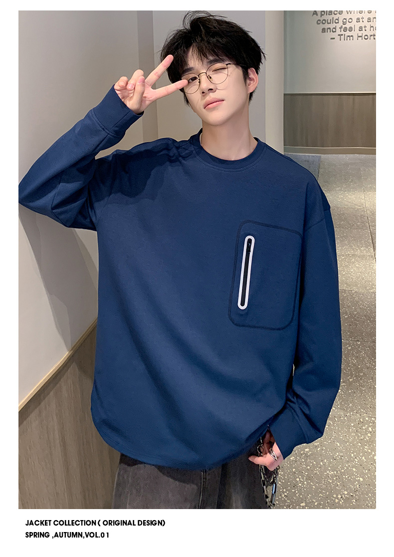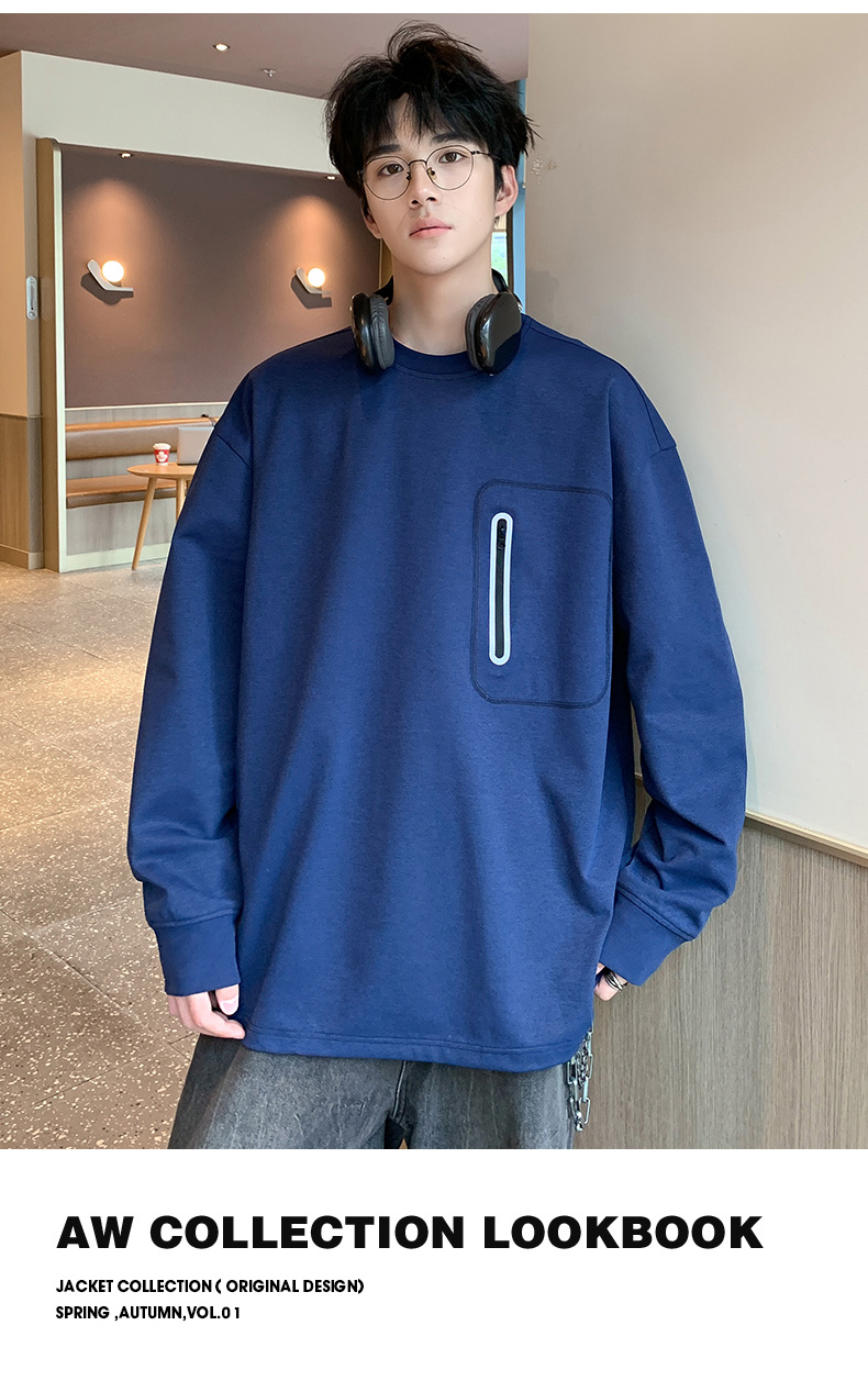 英国轻奢Schenvega 爆款迪桑平纹胸口口袋长袖T恤卫衣A72-7901