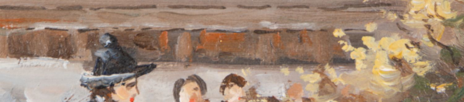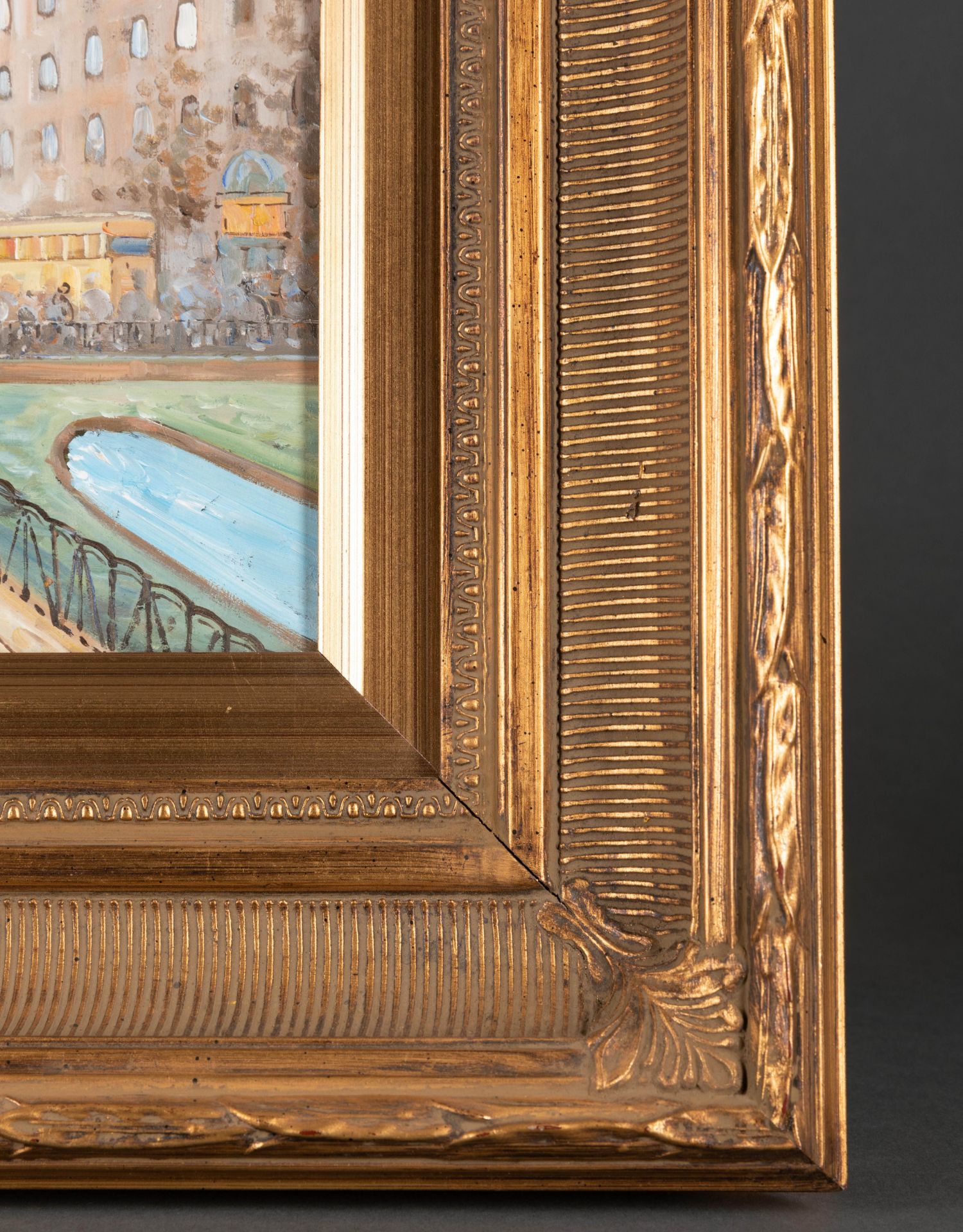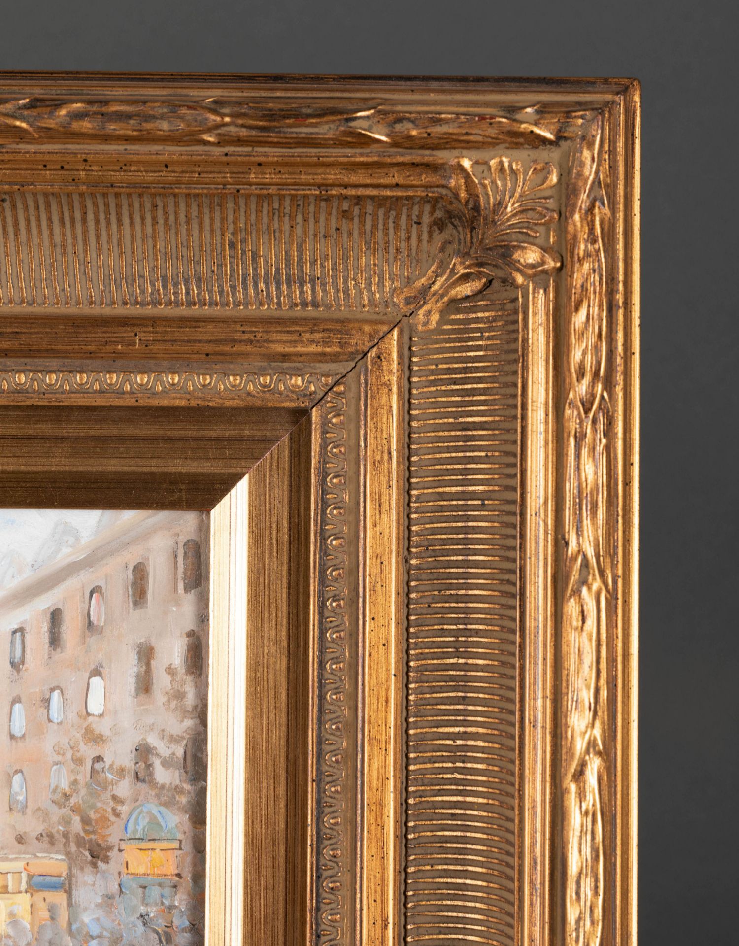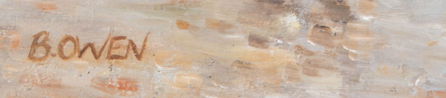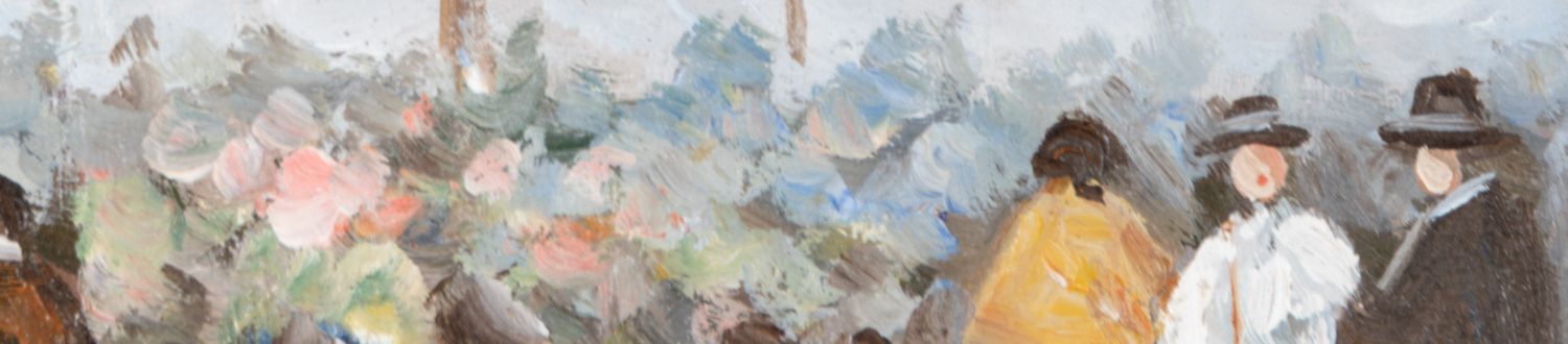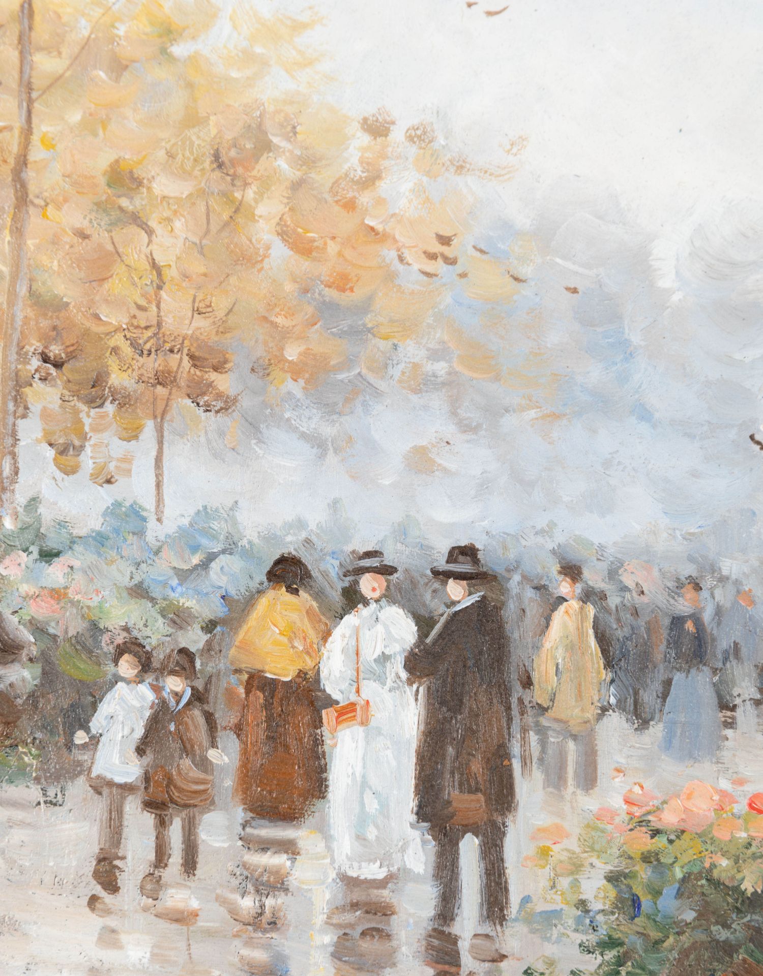 独角鹿西洋古董画家B.owen签名Marché aux Fleurs-花市主题油画