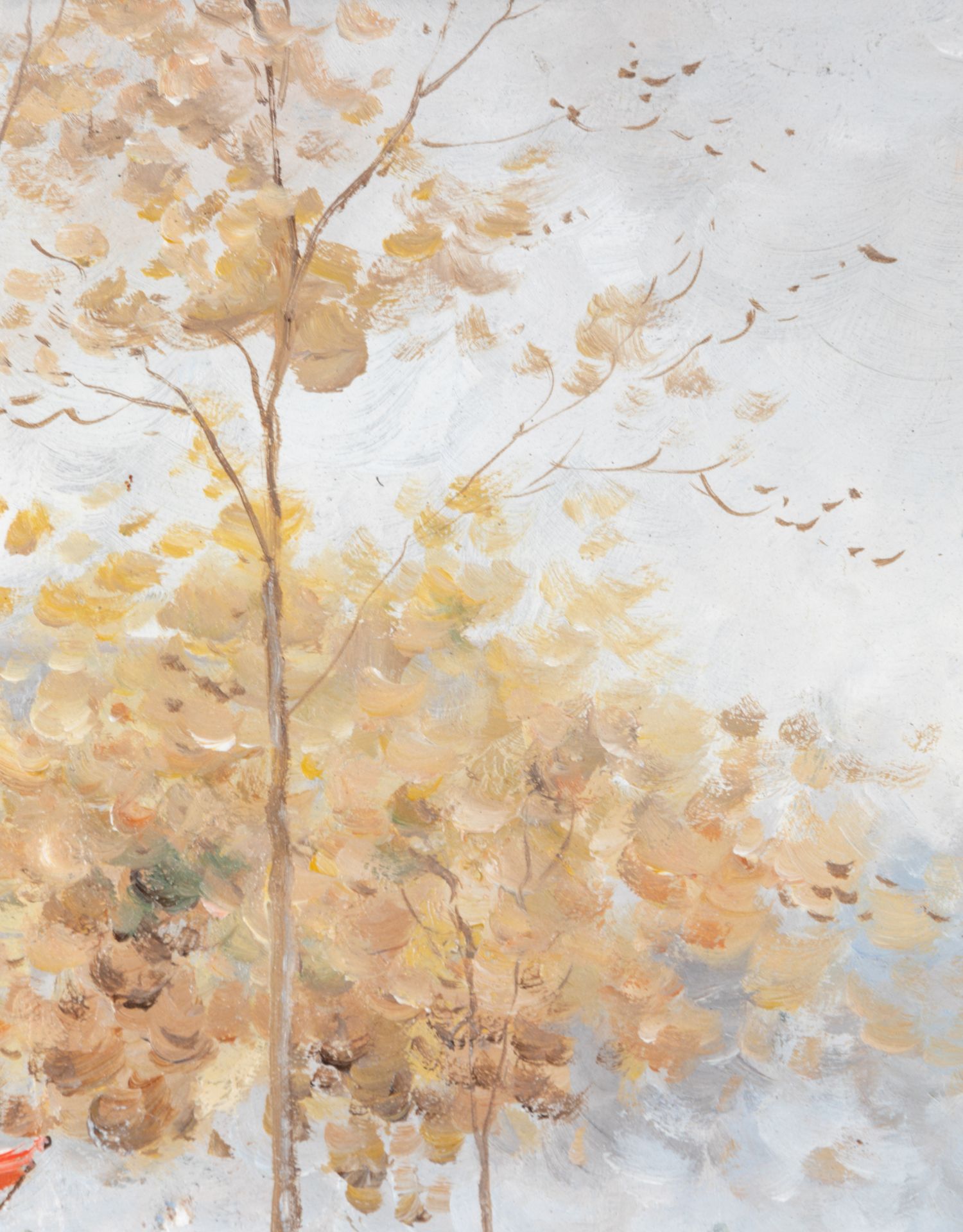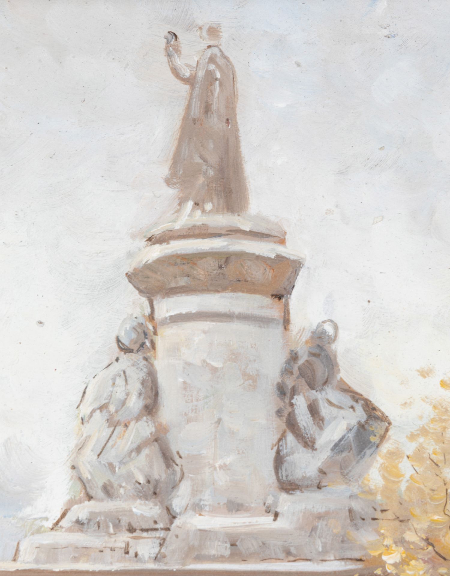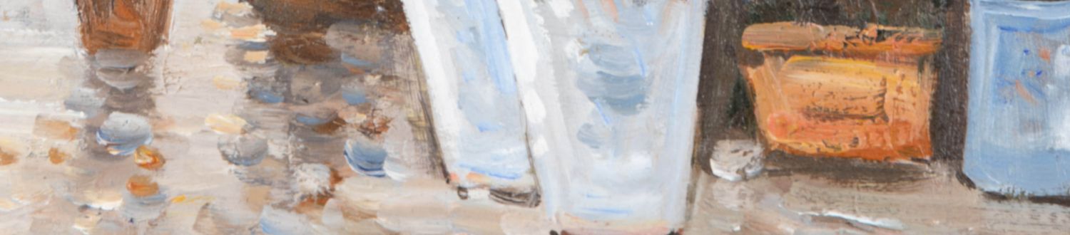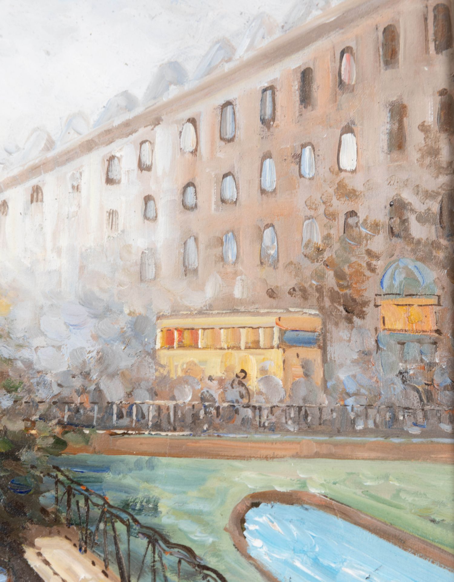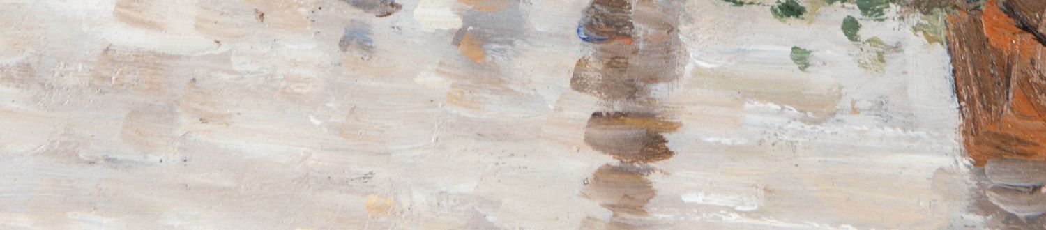 独角鹿西洋古董画家B.owen签名Marché aux Fleurs-花市主题油画