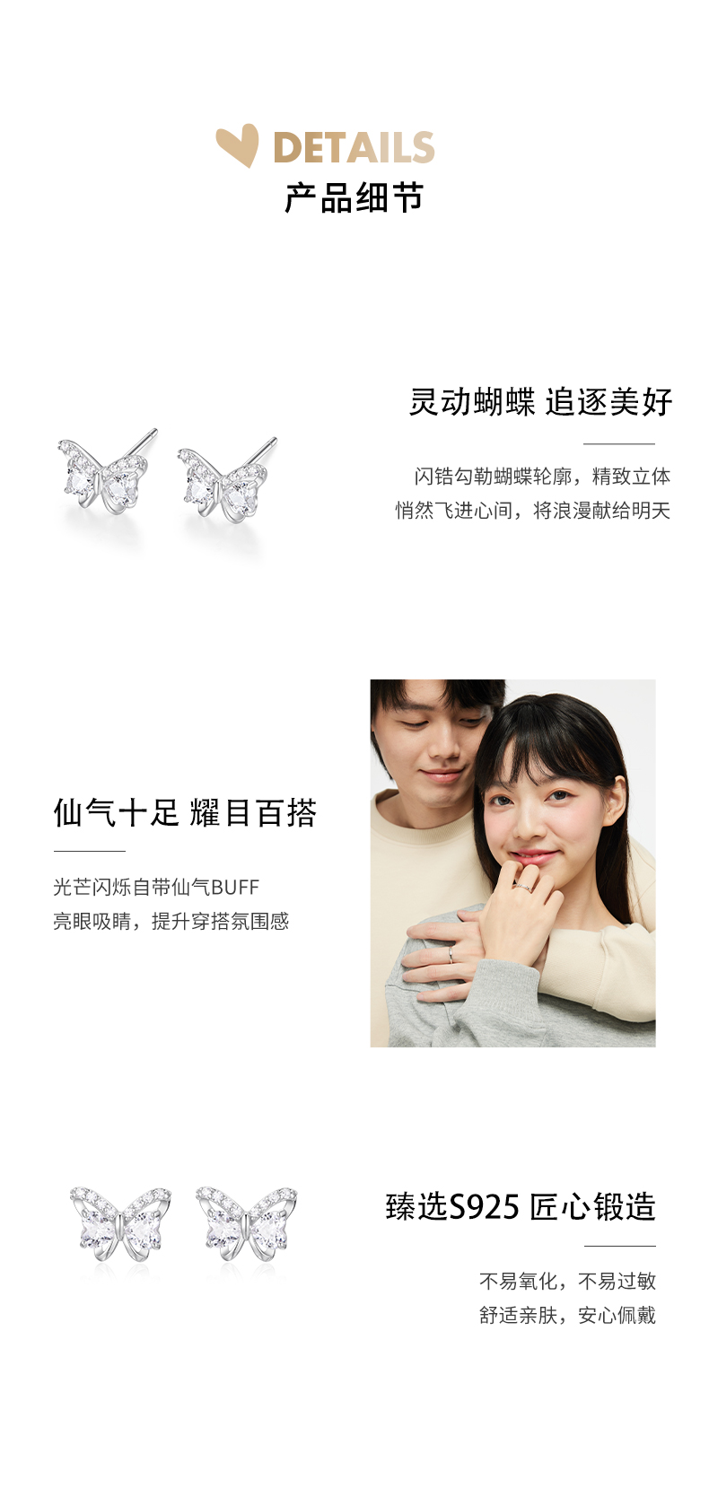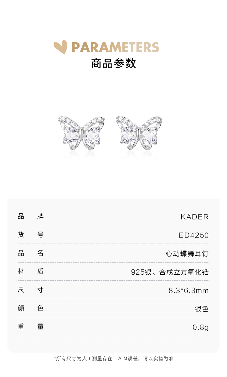 卡蒂罗/KADER 心动蝶舞耳钉 925银灵动蝴蝶闪耀璀璨甜美款耳饰 与光同尘浪漫吸睛配饰可爱梦幻 女友520礼盒
