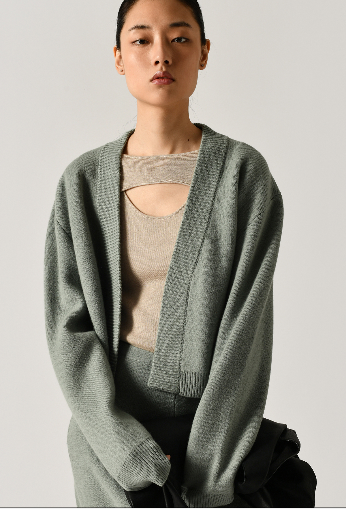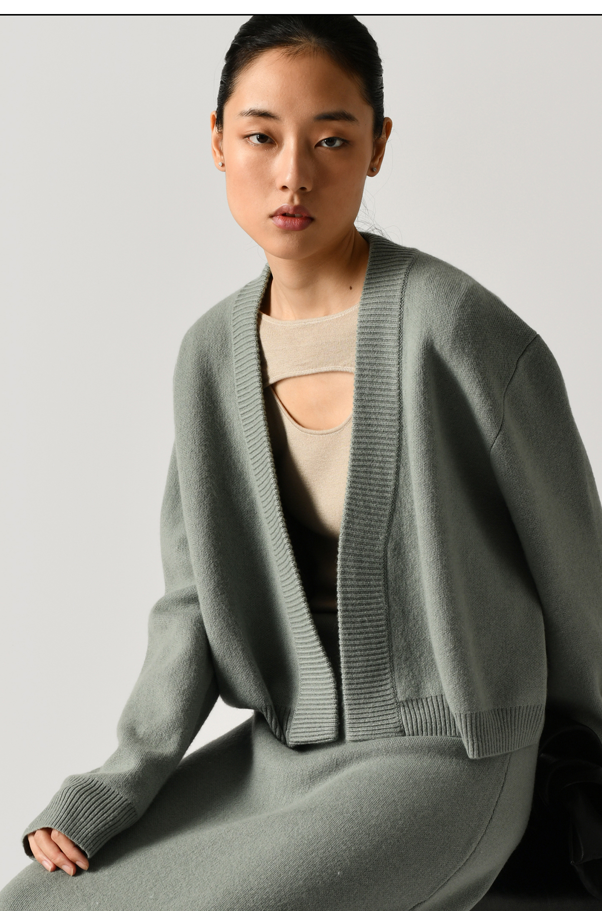 322工房针织西装羊绒混纺开衫长袖纯色秋冬宽松加厚毛衣外套A942