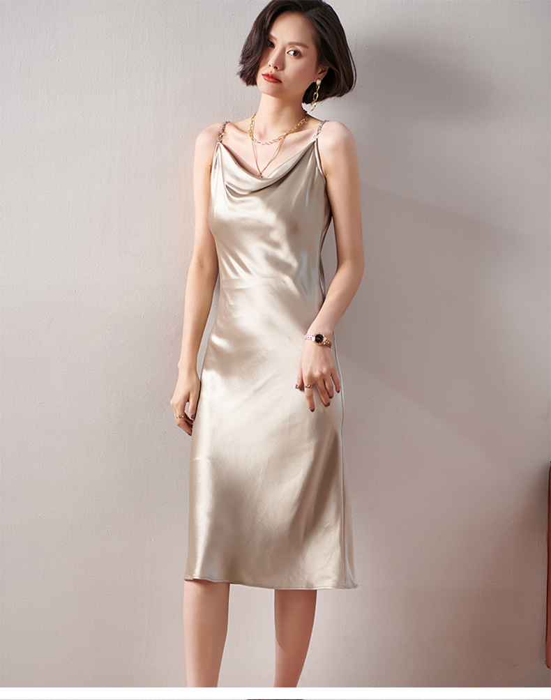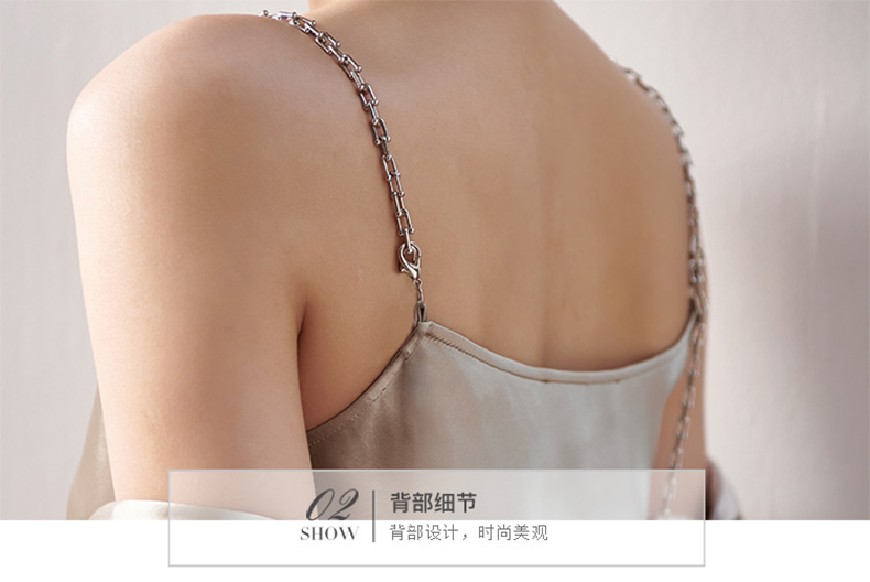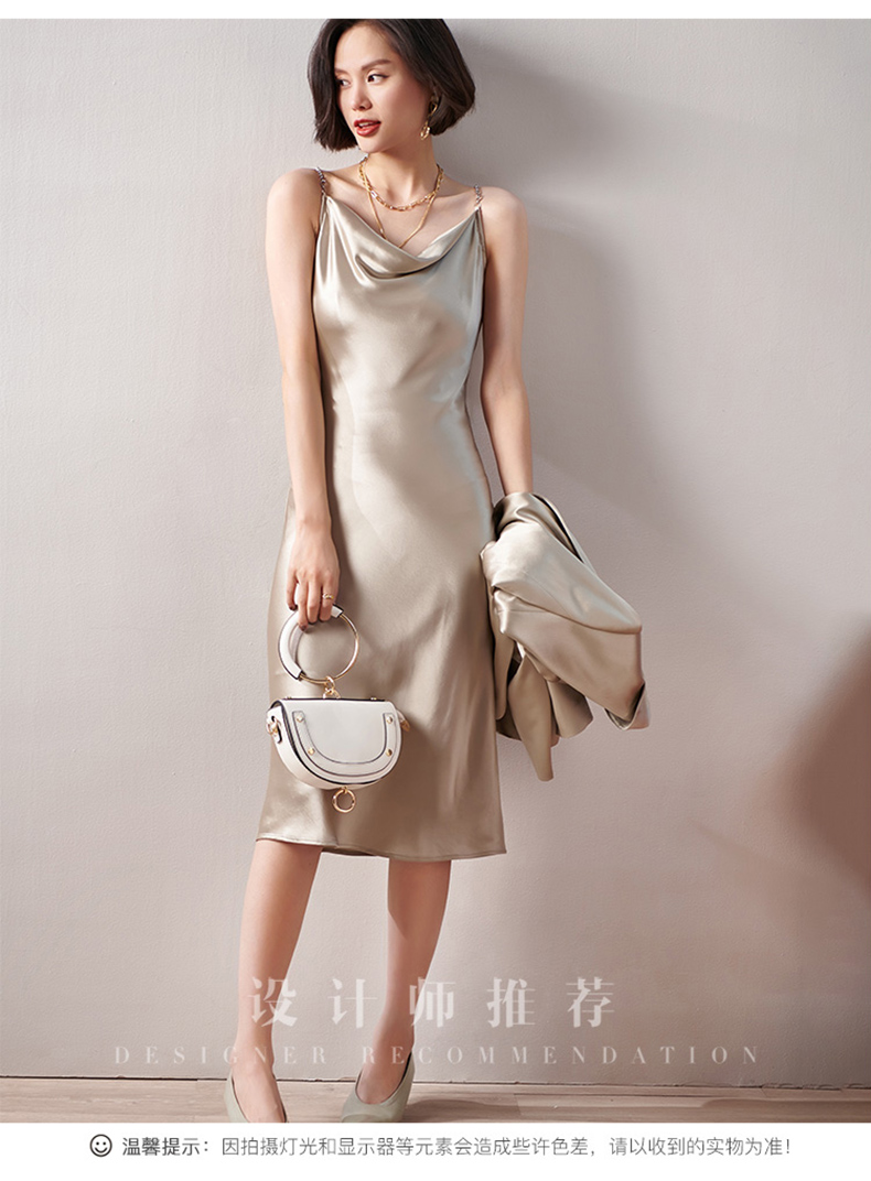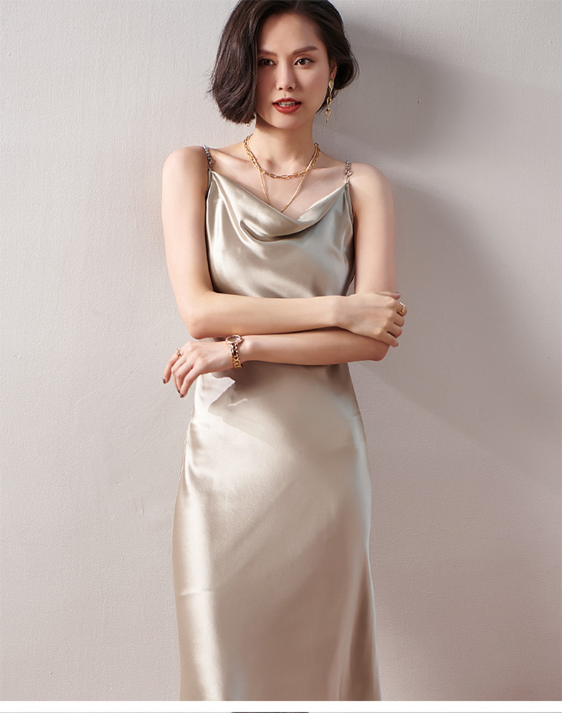 剩S/M/L 芳外春季新款荡领链条打底吊带裙性感修身显瘦醋酸连衣裙0145