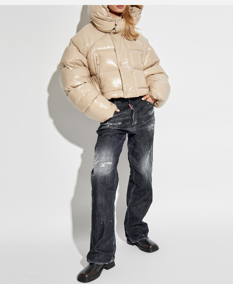 DSQUARED2 女士徽标绗缝连帽羽绒服 米色 S80AM0040 S60518 113