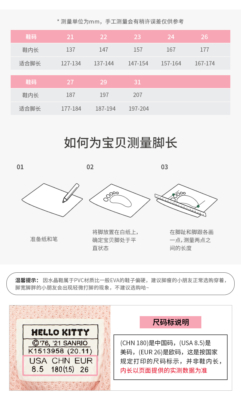 HELLOKITTY凯蒂猫童鞋四季果冻鞋21-31 K1815904