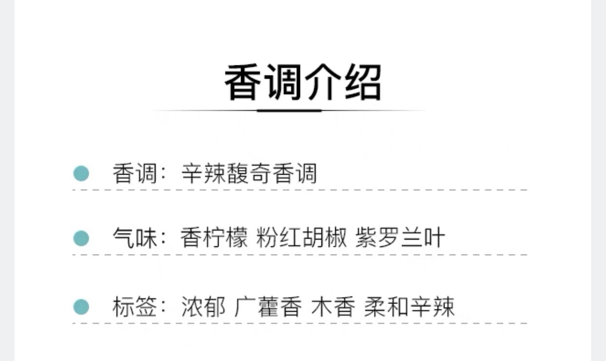 ▪️一入檀香深似海,木质调的香水总是给人一种神秘感。用作寝香也是再好不过。前调柏树开场,简单存粹的木香;而后沉静、温和的檀香如缕缕青烟般散开,之中参合着淡淡的奶感,丝微的花果香,融合在一缕烟中,转眼遍散开了。檀道沉静、通透、不轻飘,很适合喜欢低调的男生去穿。