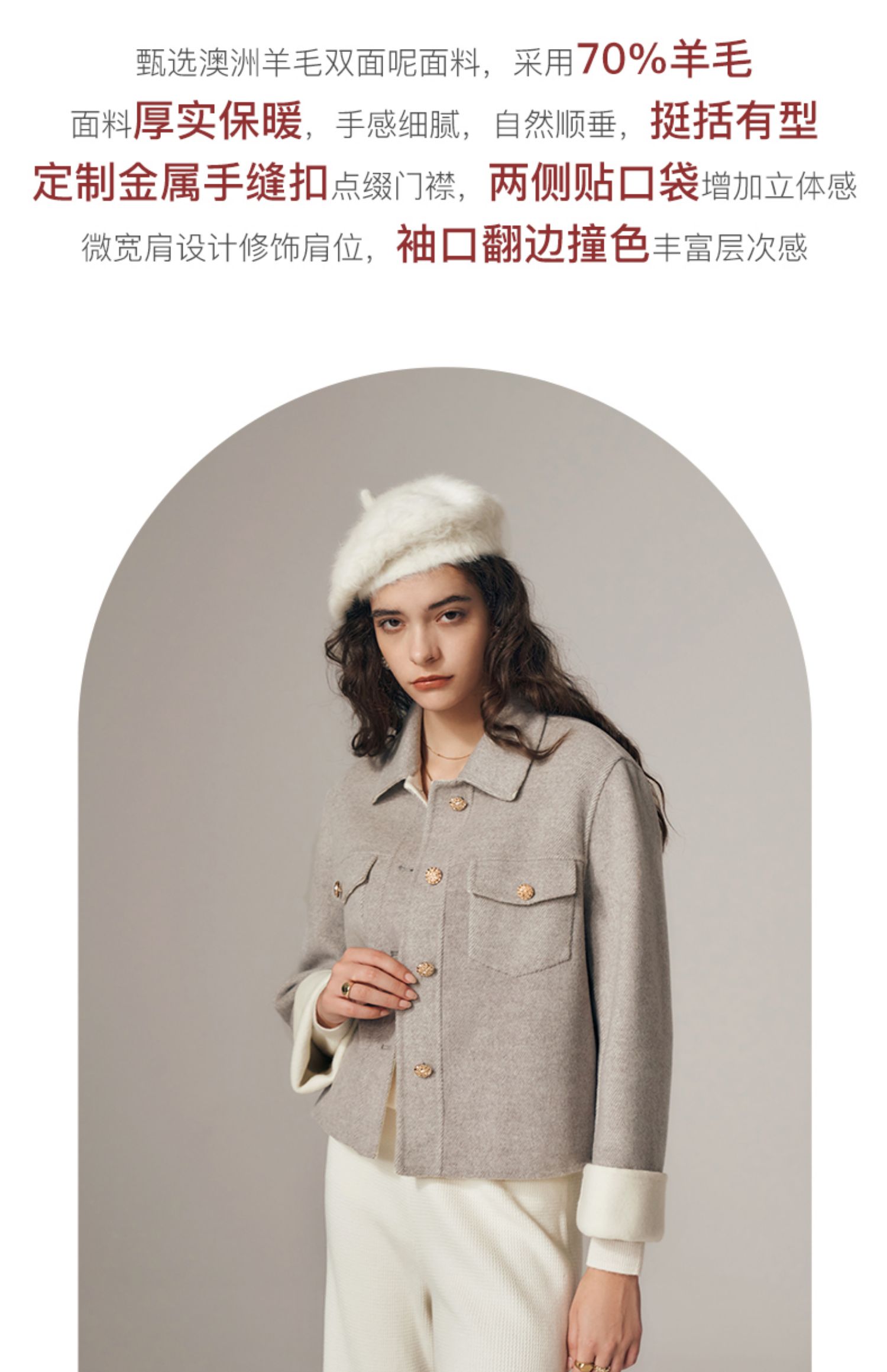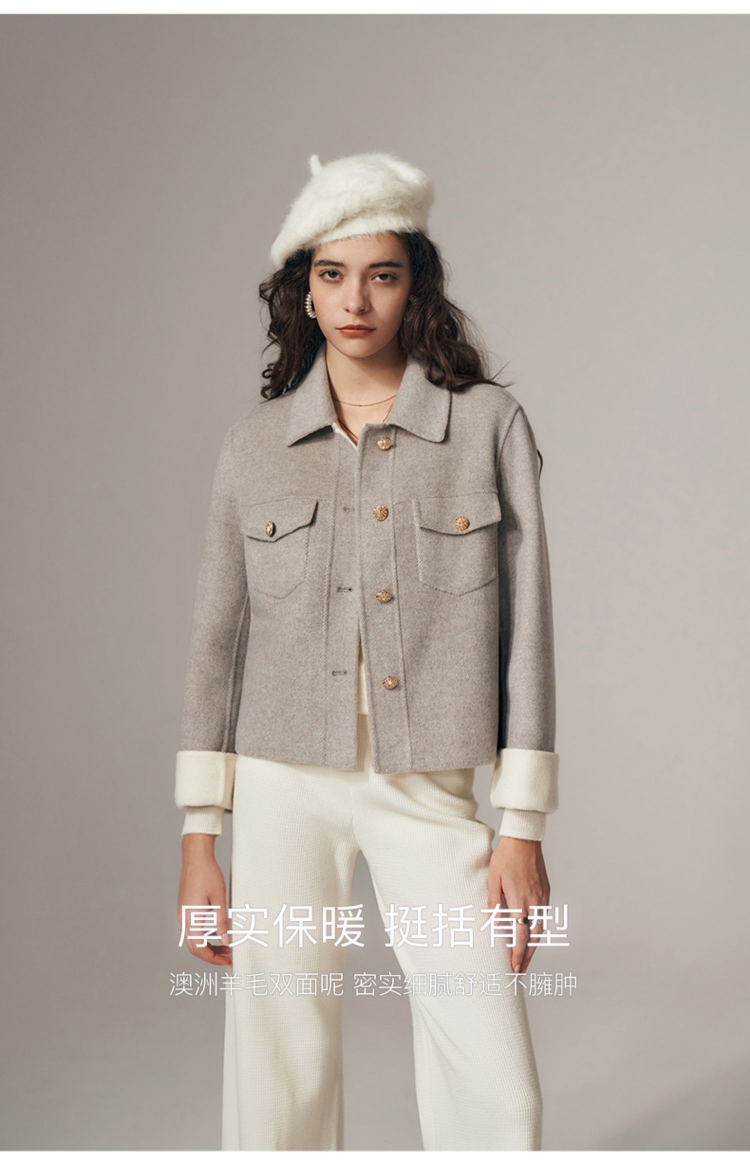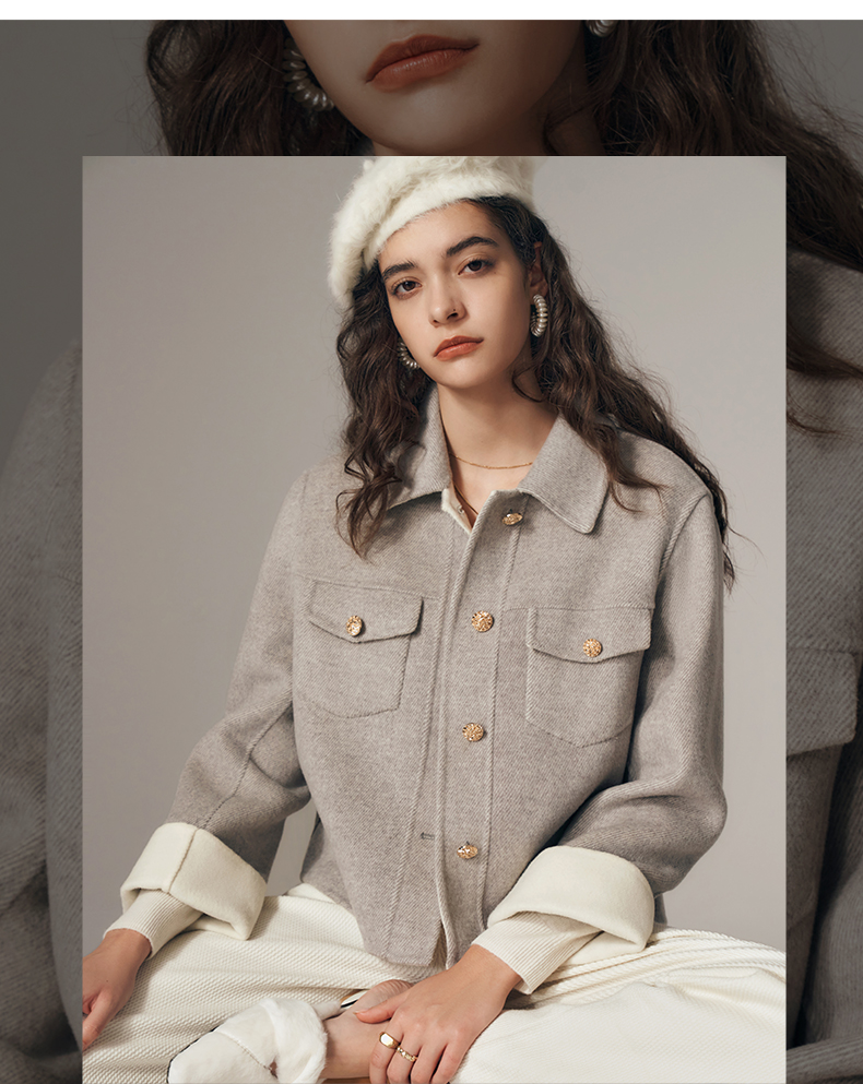 欧芮儿气质休闲短款双面呢外套时髦