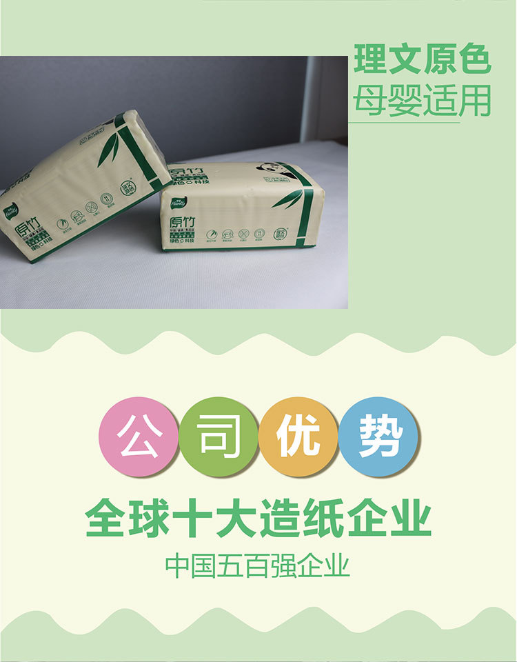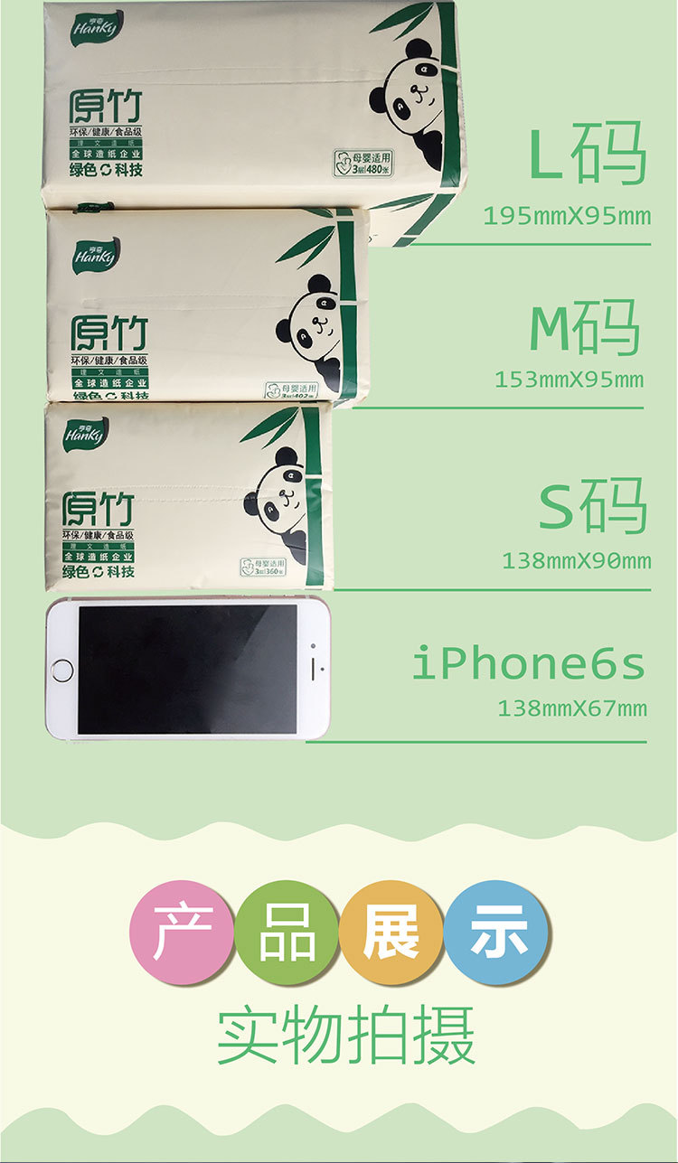 Hanky/亨奇原竹竹浆本色纸M码抽纸3层*130抽*6包*4提