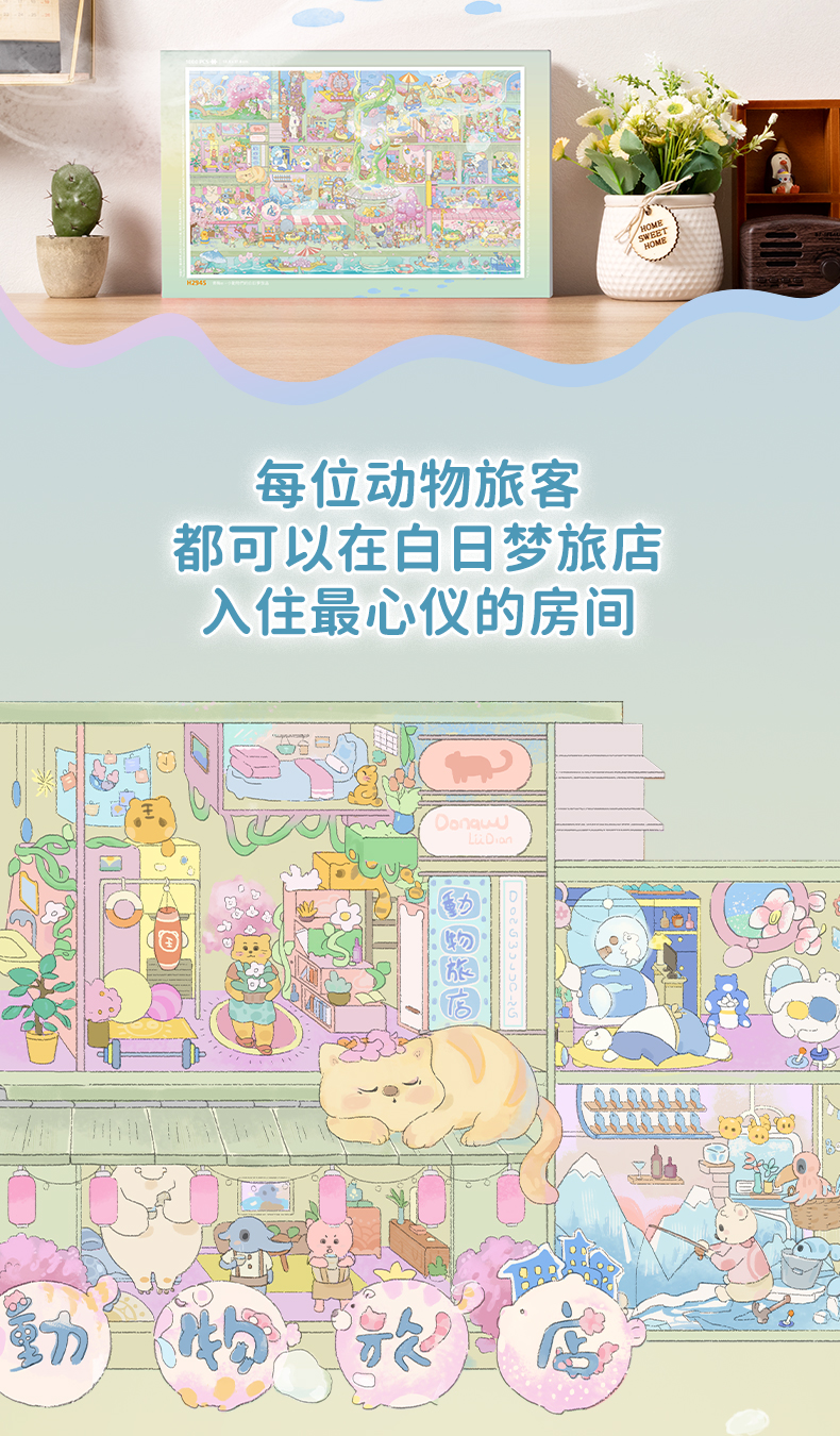 【折扣商品 不退不换】1000片平面拼图塑料拼图 H2945 青梅ei-小动物们的白日梦旅店