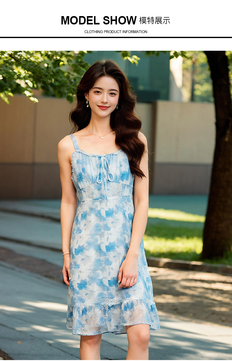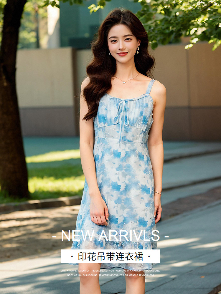 奢姿大码女装2025夏季减龄蝴蝶结印花吊带连衣裙胖妹妹甜美裙子5752805603