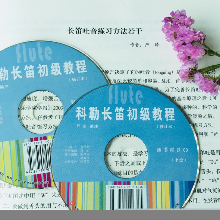为了使初学者对现今长笛演奏方法有一个基本的认识,在教材的*后加入了三篇有关长笛演奏的论文。为了在学习过程中,有一个听觉效果上的借鉴,按教材录制了CD,希望能够对大家的长笛学习有所帮助。