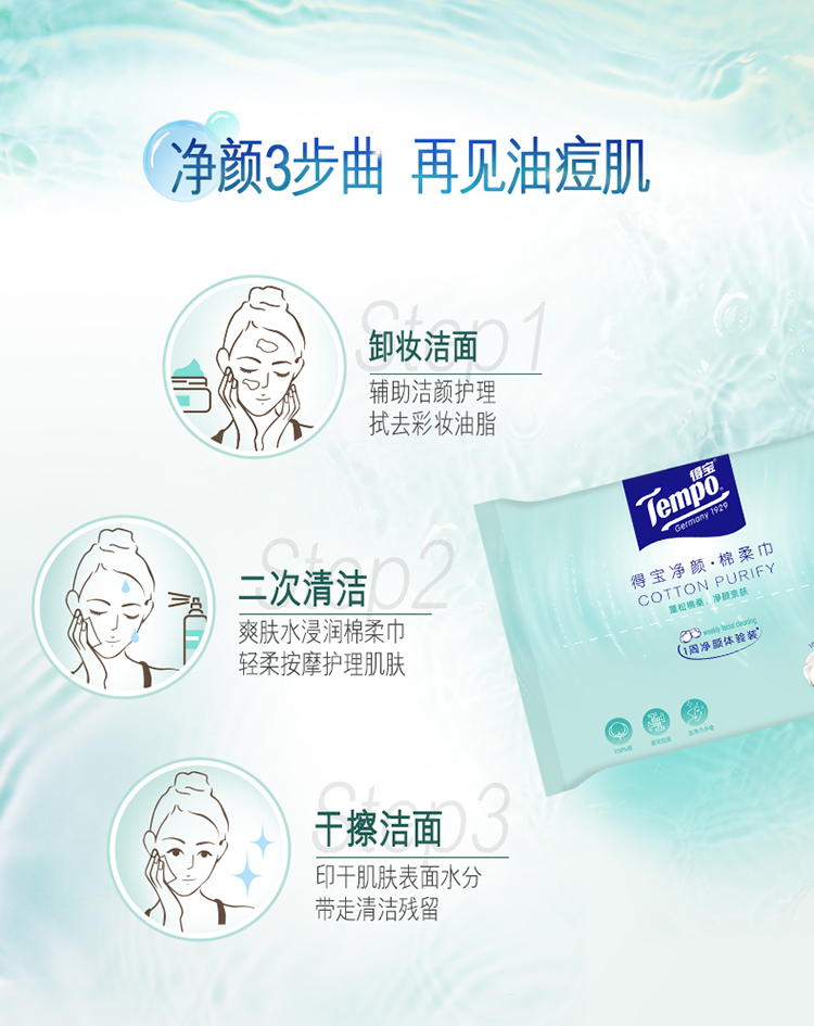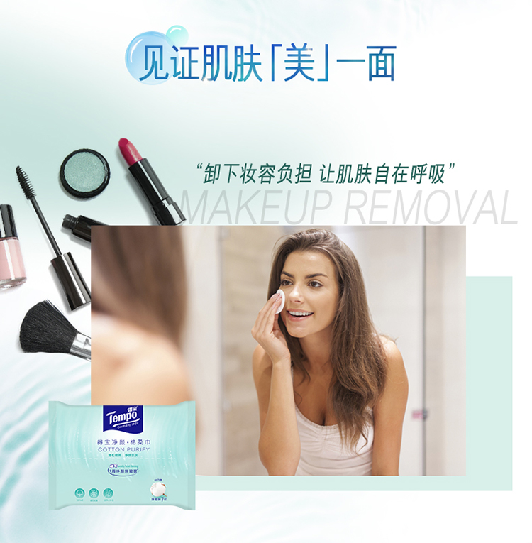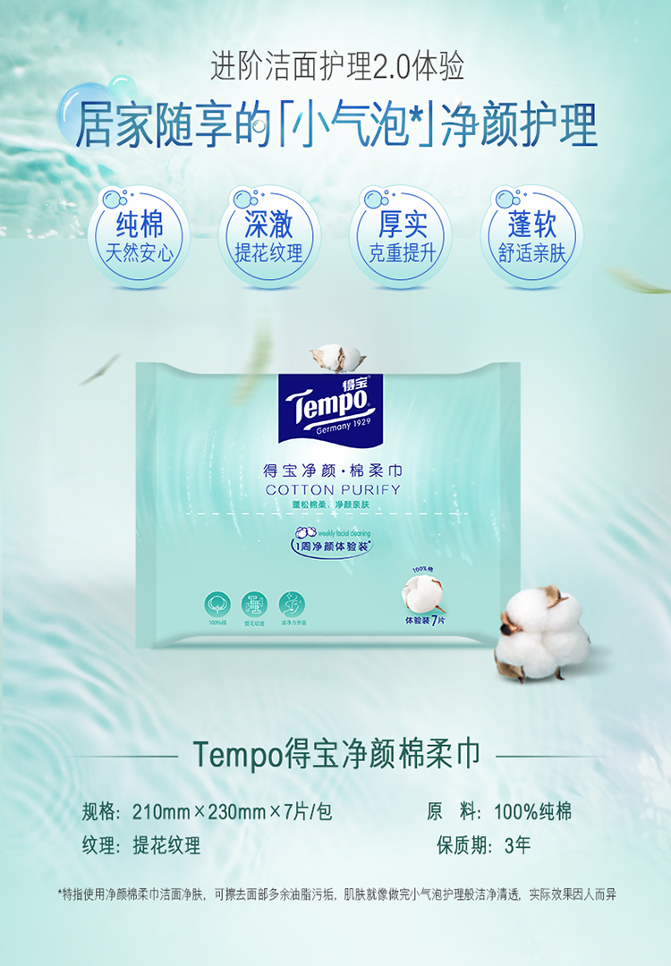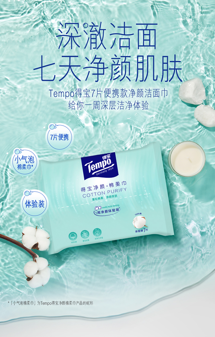 【积分兑换】Tempo得宝 净颜棉柔巾7片/包x3包 干湿两用便携试用装