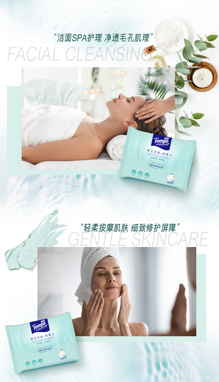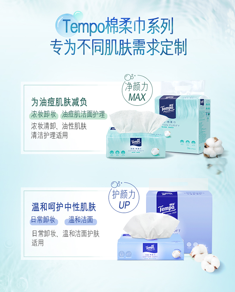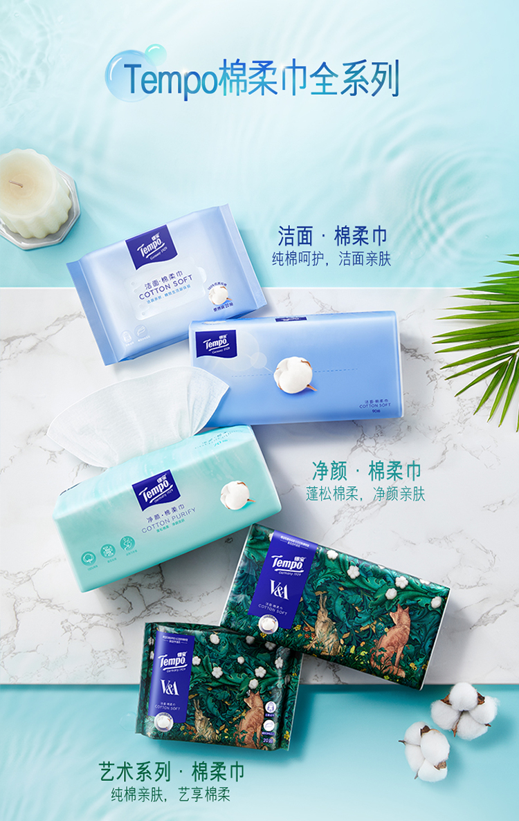 f『得宝Tempo』lotion抽取式乳霜柔软纸面巾70抽四层4包*2提 共8包