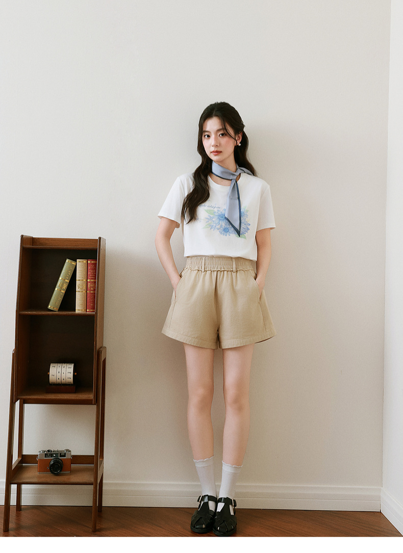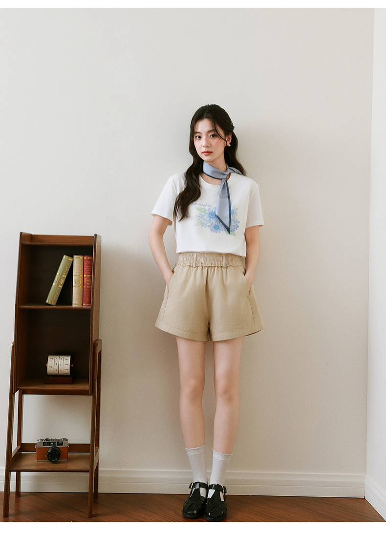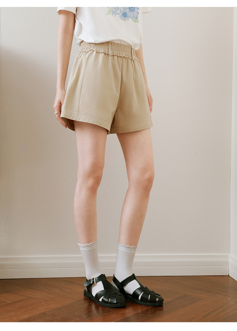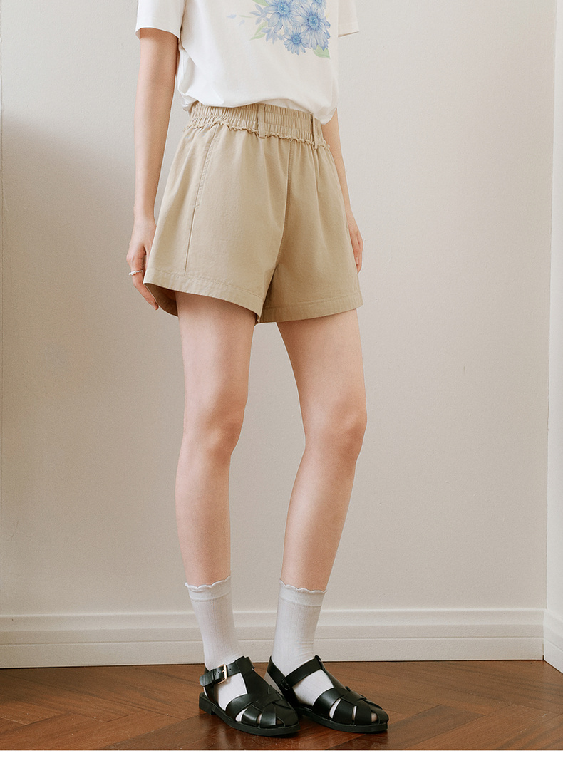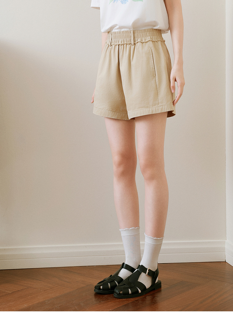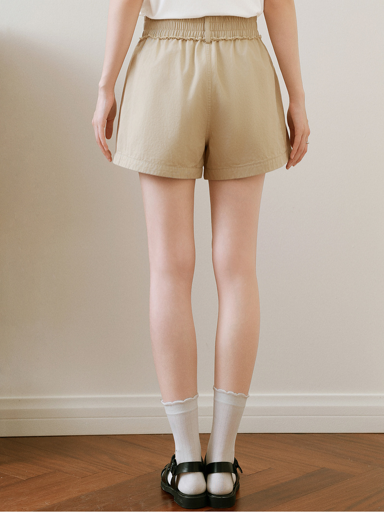 【严选】诗凡黎卡其色短裤2025年春新款时尚设计感高腰显瘦包容百搭休闲裤7G4150211