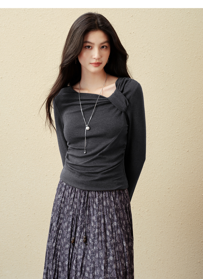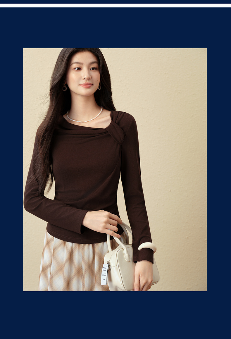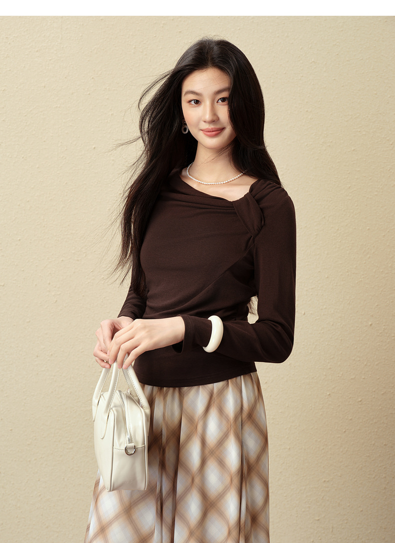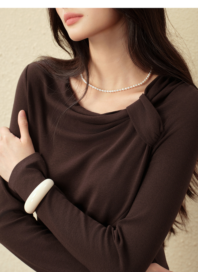 【严选】诗凡黎优雅修身针织打底衫2025秋新款扭结长袖T恤设计感收腰上衣7G3100151-4