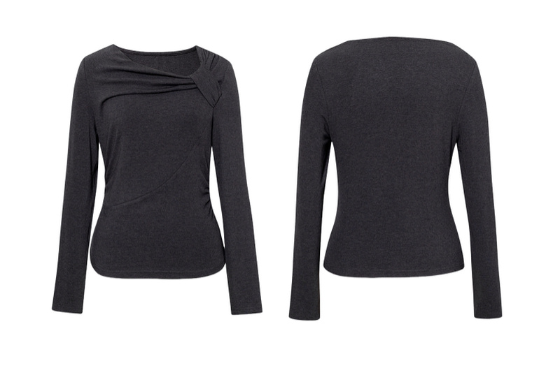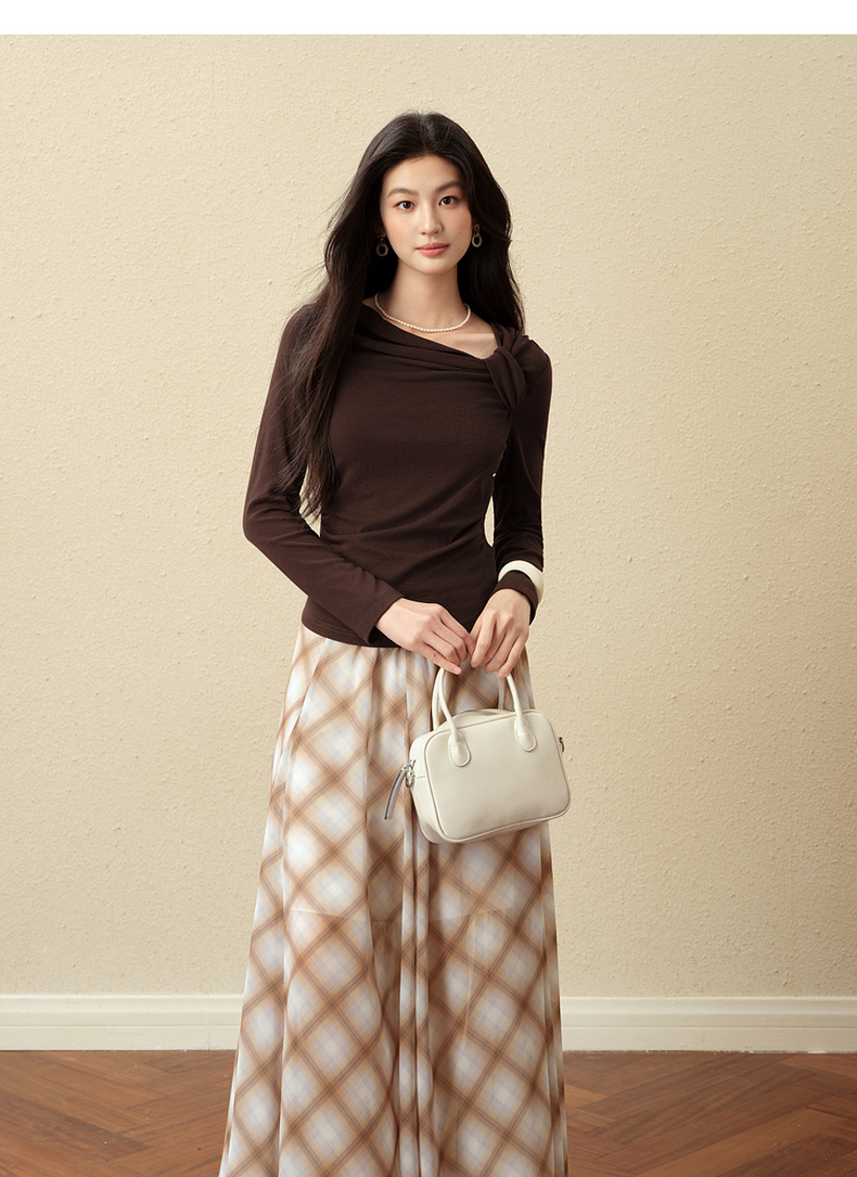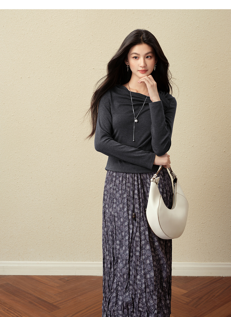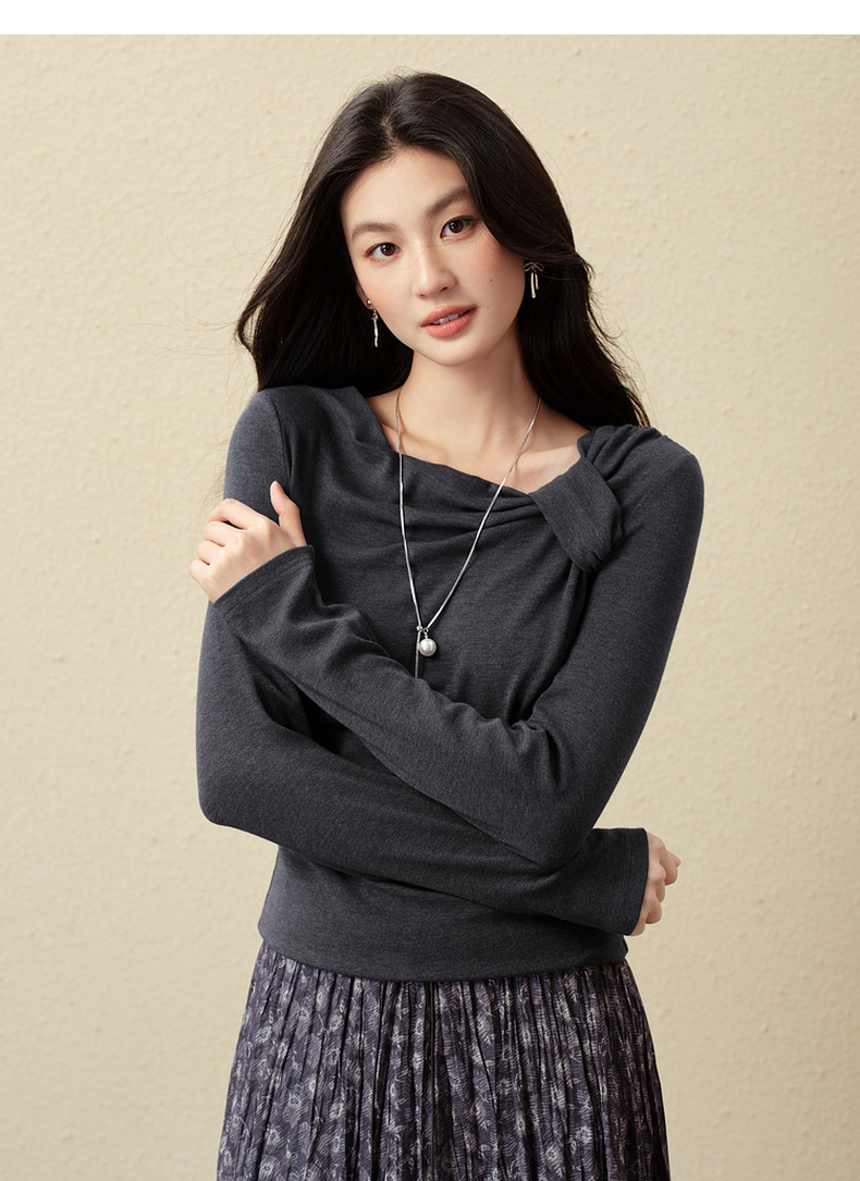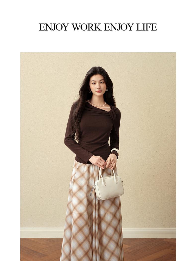 【严选】诗凡黎优雅修身针织打底衫2025秋新款扭结长袖T恤设计感收腰上衣7G3100151-4