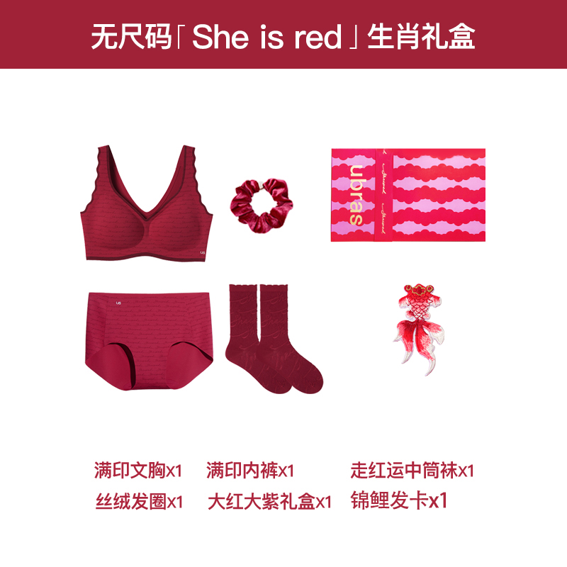 原礼袋改送锦鲤发夹!【新年/本命年送礼】刘雯代言品牌ubras无尺码SHE IS RED满印文胸背心款礼盒UZ1144061 均码