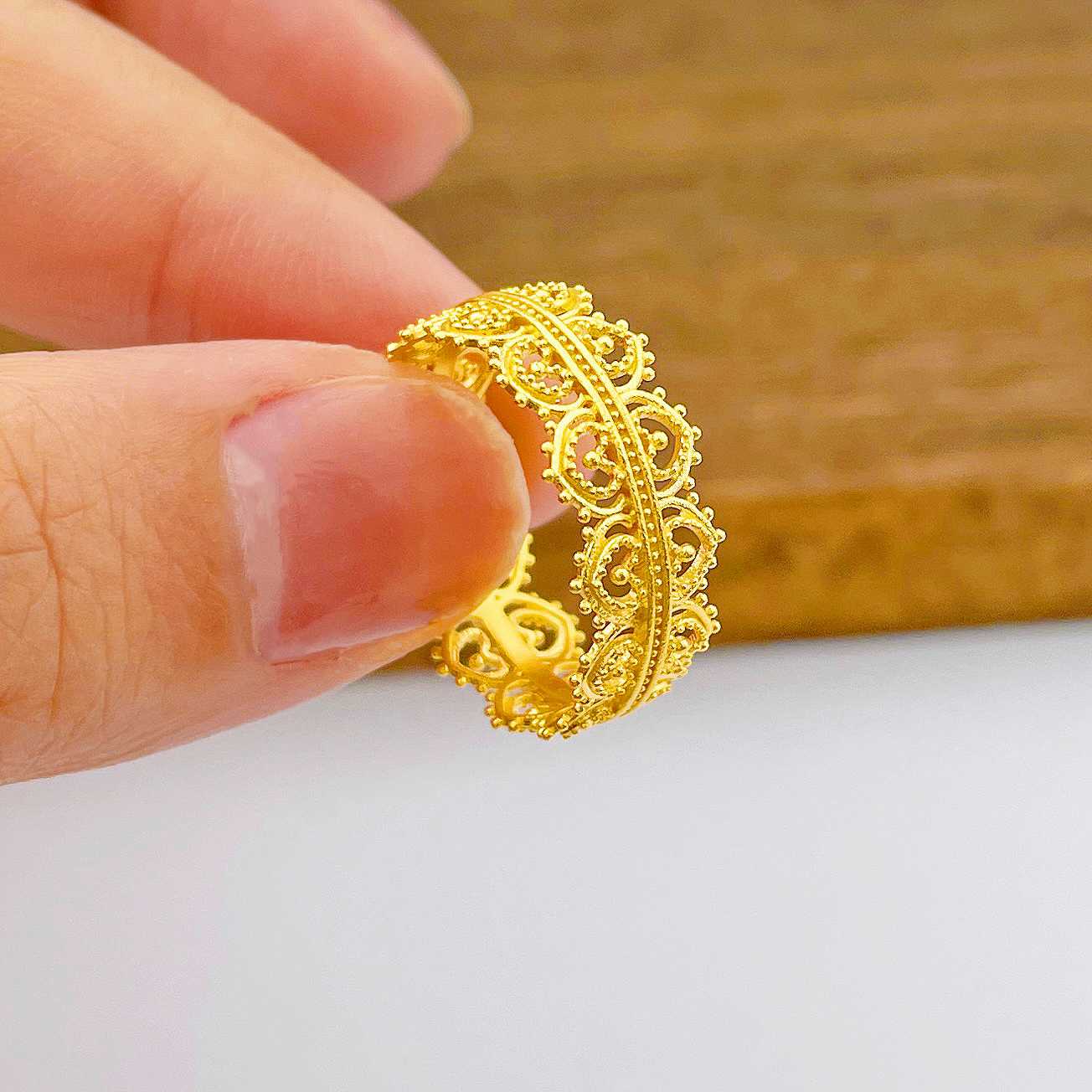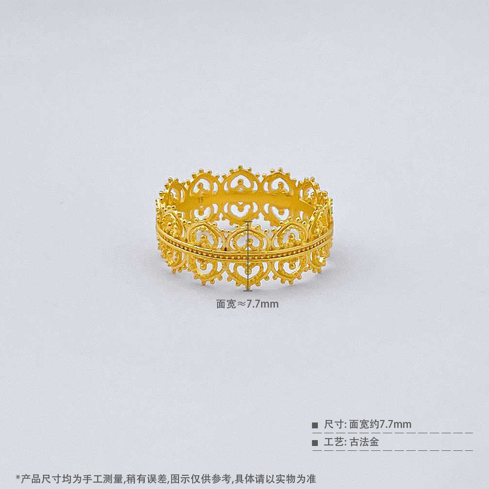 【限时克减150元】足金999.9 #皇冠 #宫廷风 古法镂空实心固口宫廷蕾丝皇冠女戒(AIGFJZ00084)(预售产品下单后不退款不退货不换货不补差价