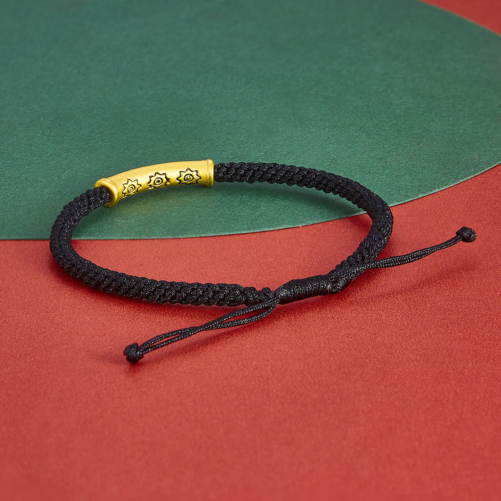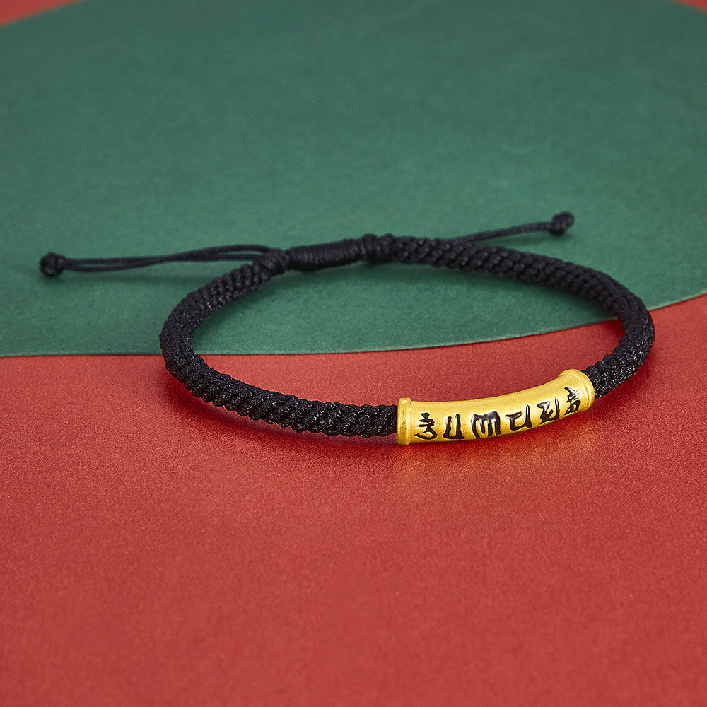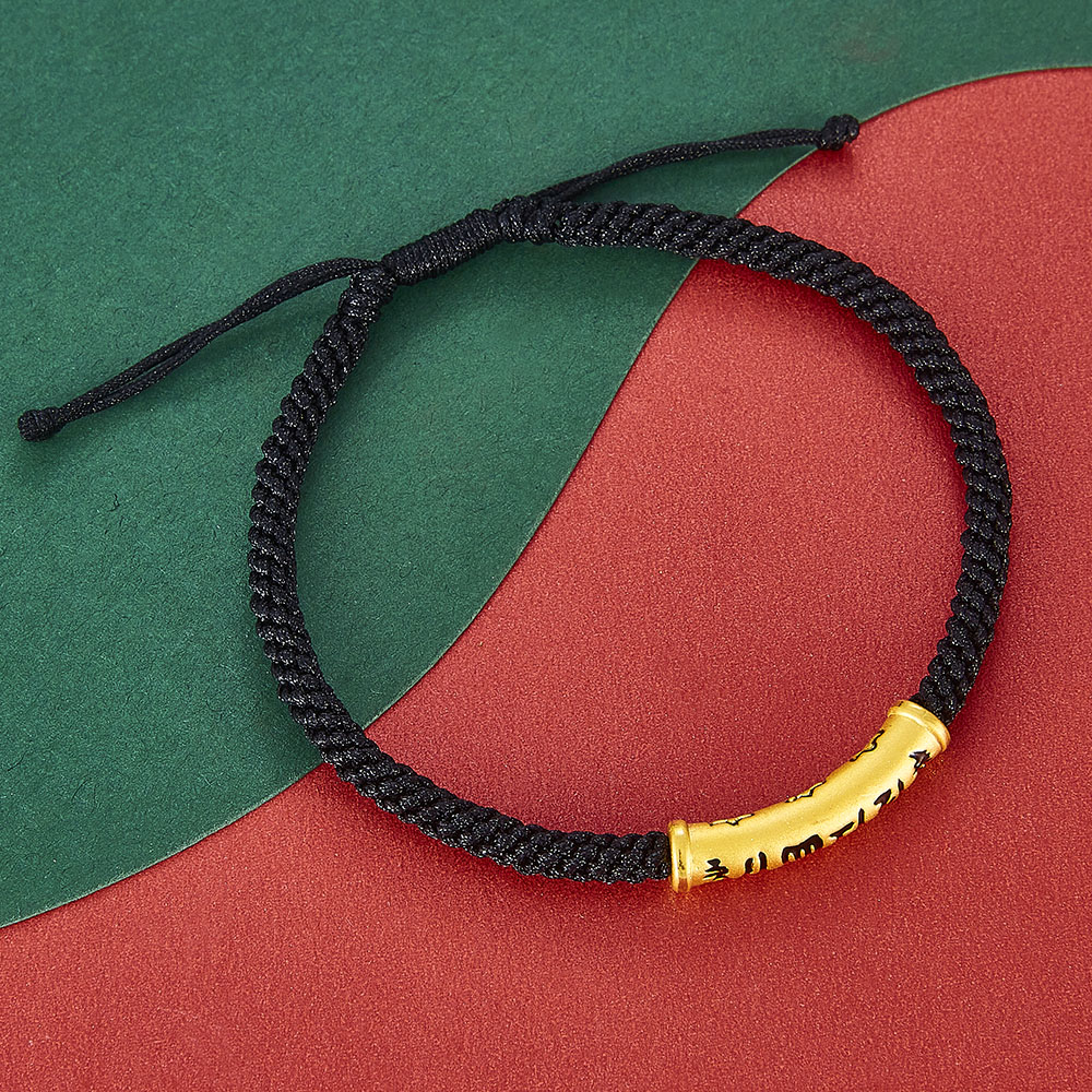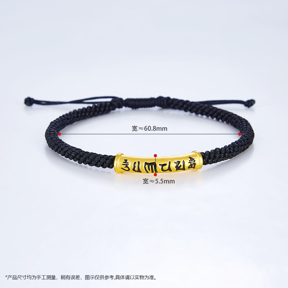 【限时7.5折】【定价黄金】足金 3D硬金黑烤漆六字真言长筒黑绳调节成品手串(AA3DSC00066)(预售产品下单后不退款不退货不换货不补差价)(预售产品下单后不退款不退货不换货不补差价)