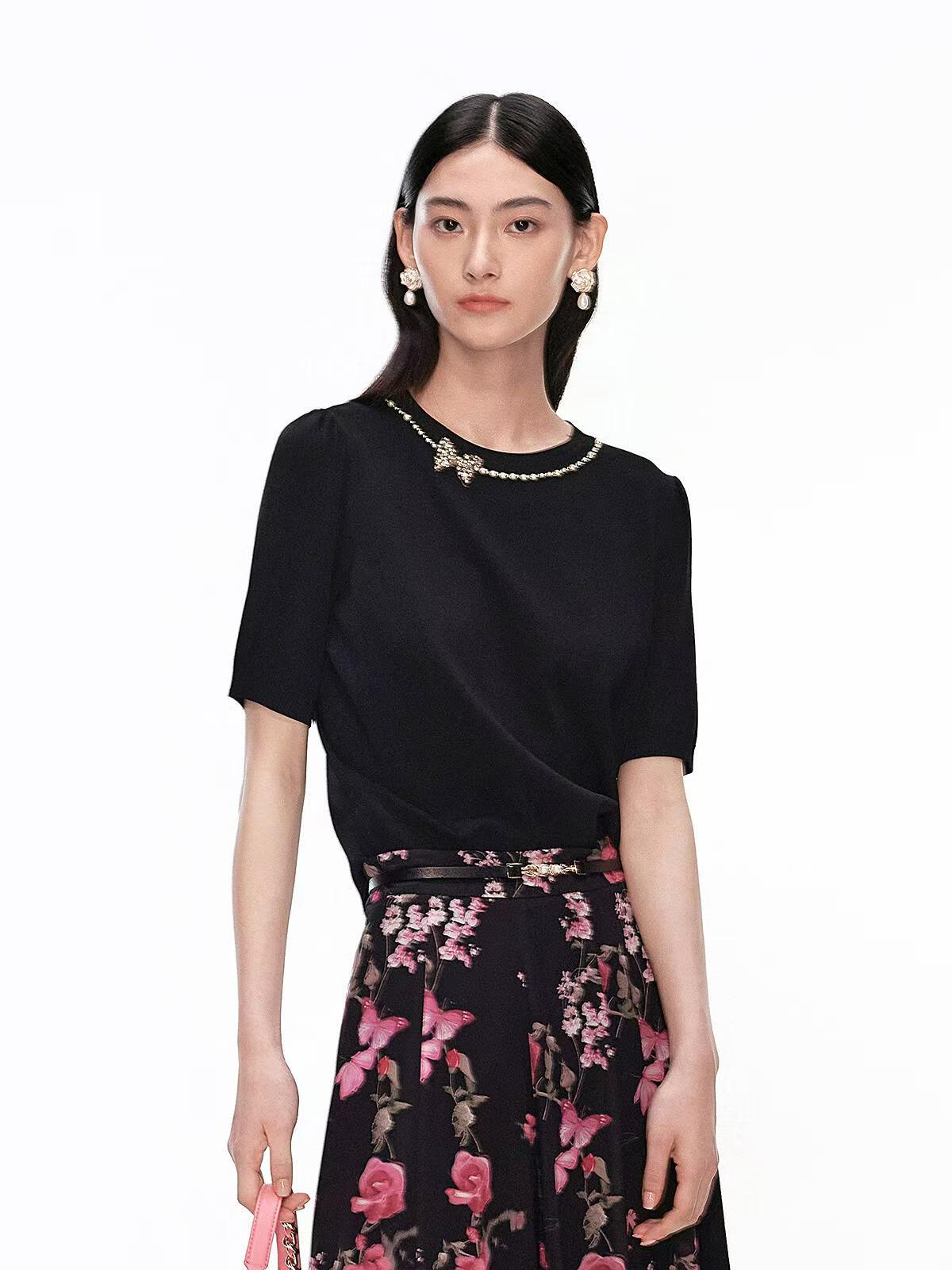 珂莱蒂尔koradior女装优雅法式珍珠链短袖KZ04266W0