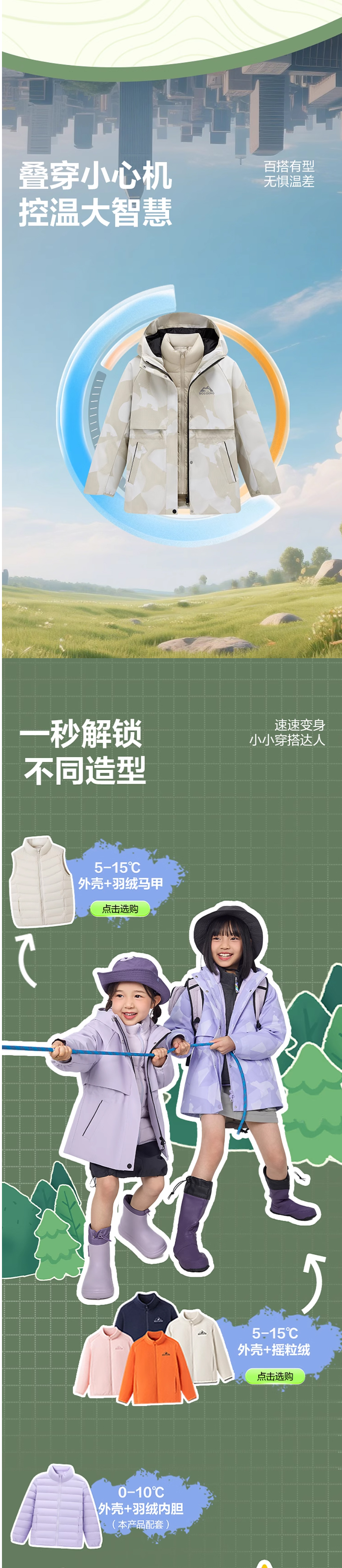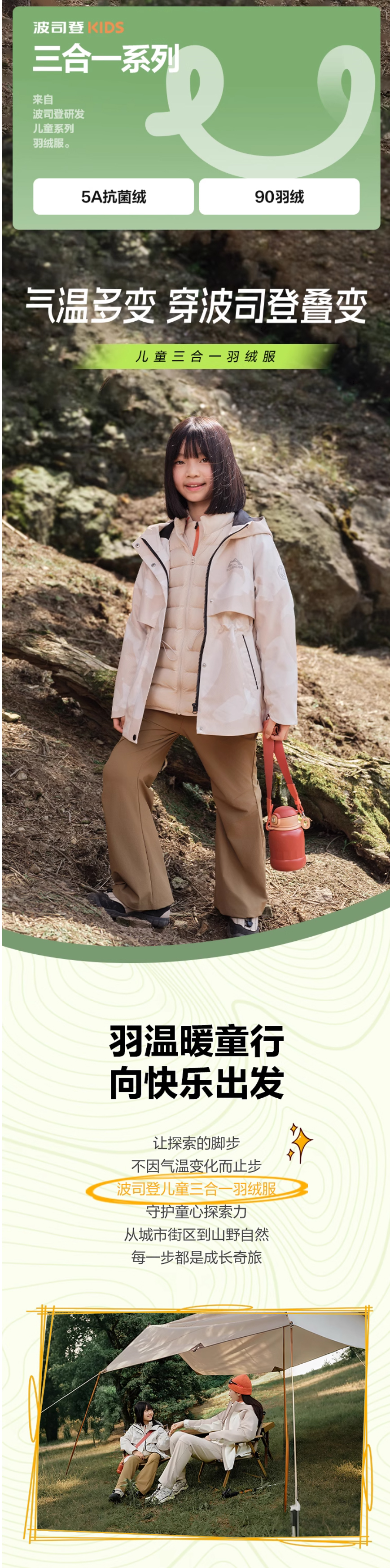 波司登儿童羽绒服内胆防水外套三合一户外保暖软壳轻量旅行2件套T250131342