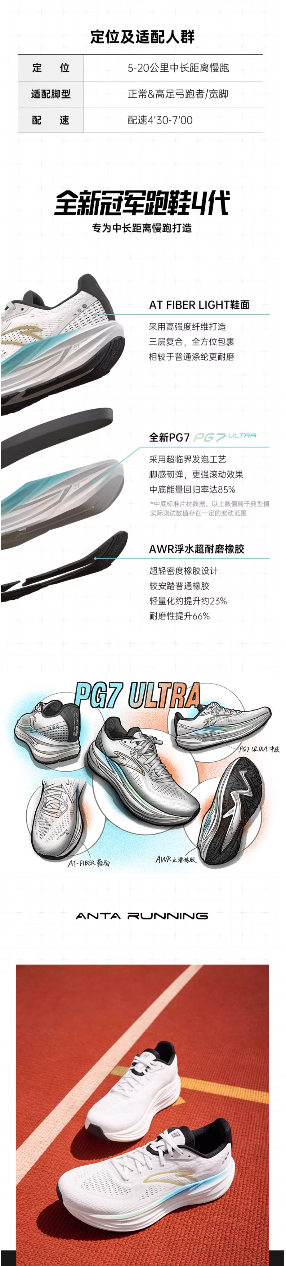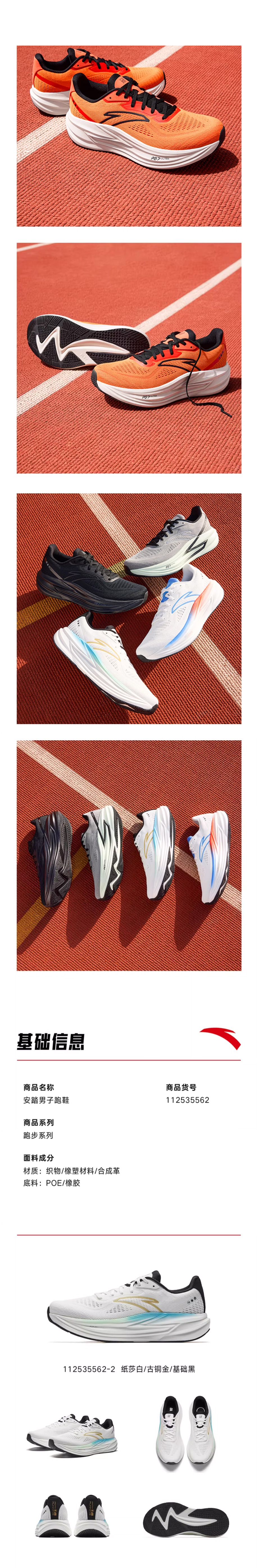 安踏贝克勒同款冠军跑鞋4代丨缓震跑步鞋男耐磨跑鞋112535562-3