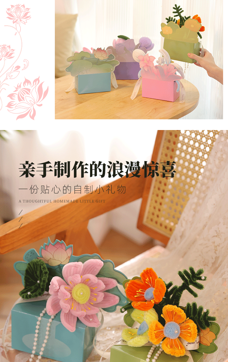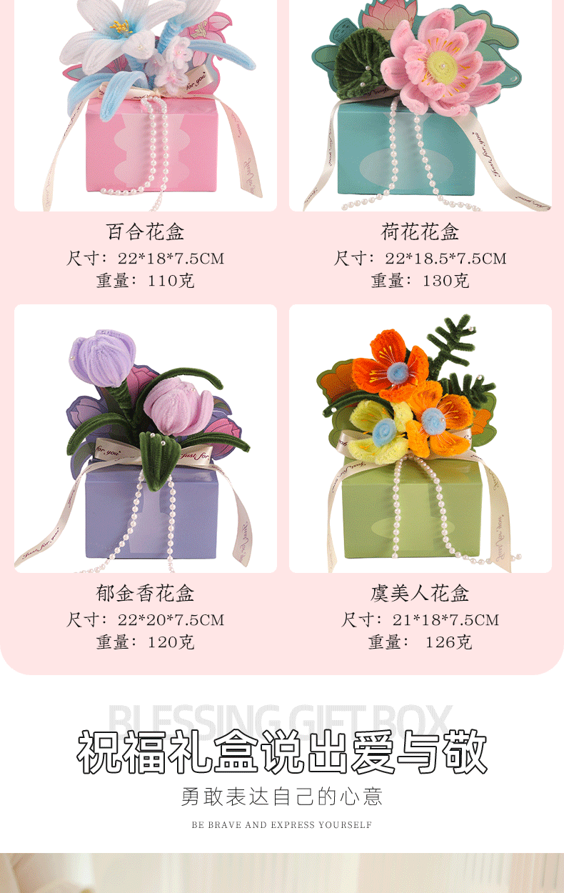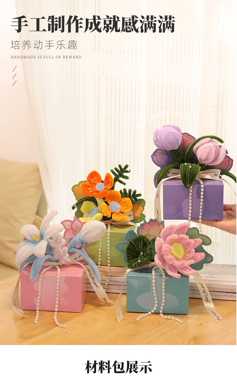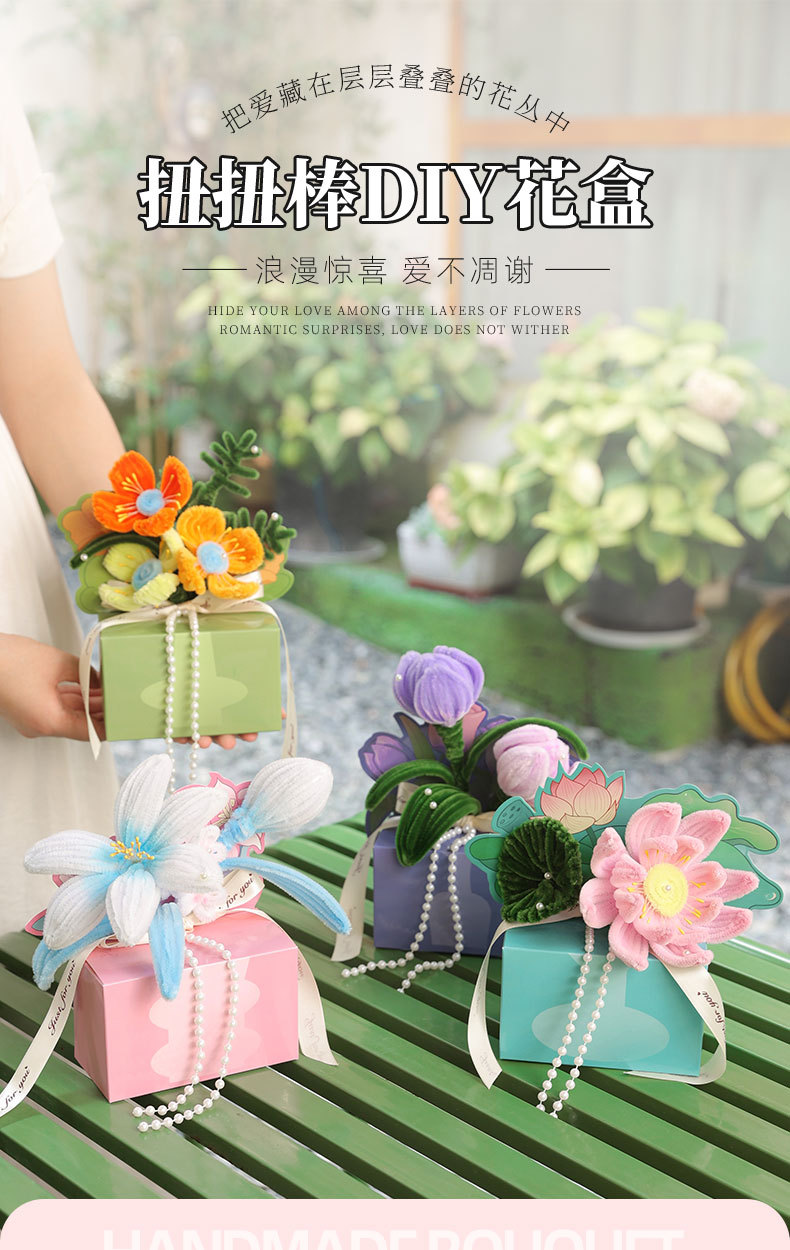 扭扭棒DIY花盒 教师节快乐礼物 花束活动礼物 儿童益智DIY材料包 是花盒也是贺卡