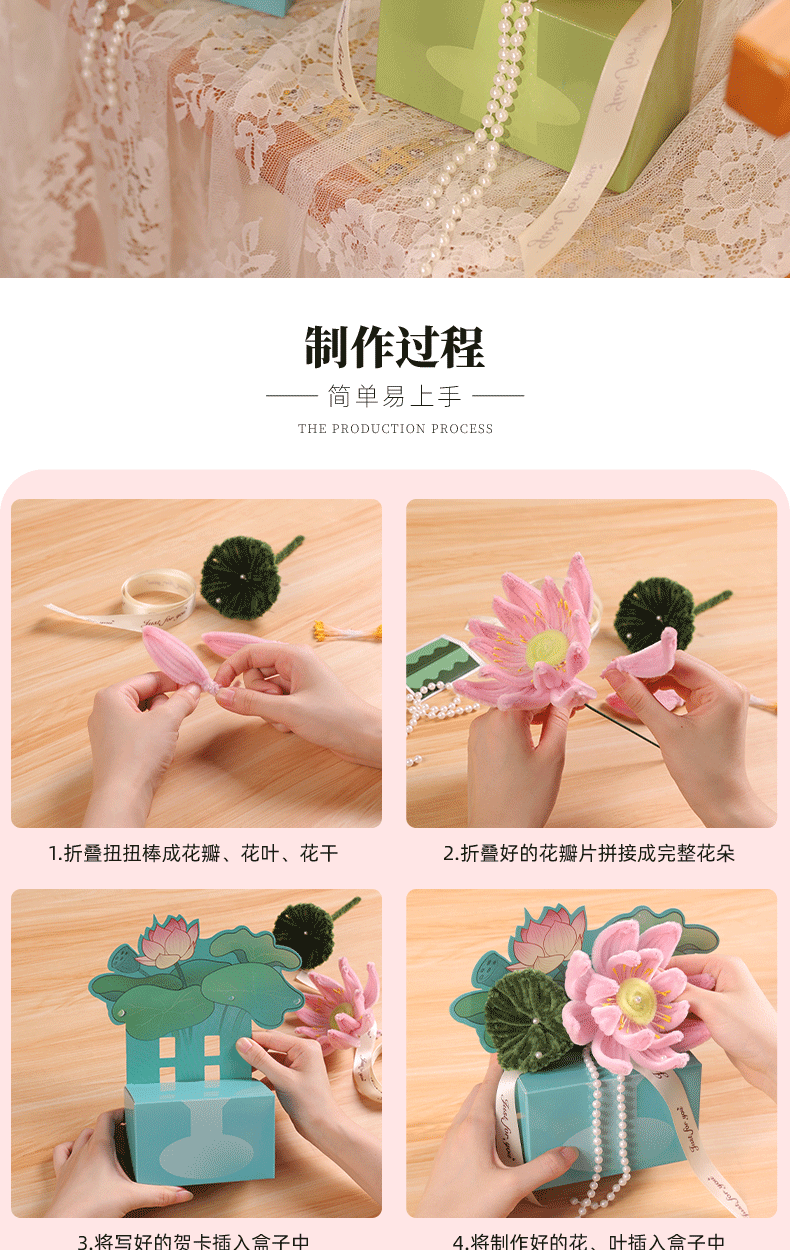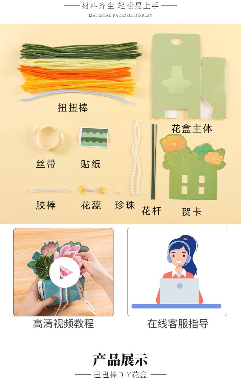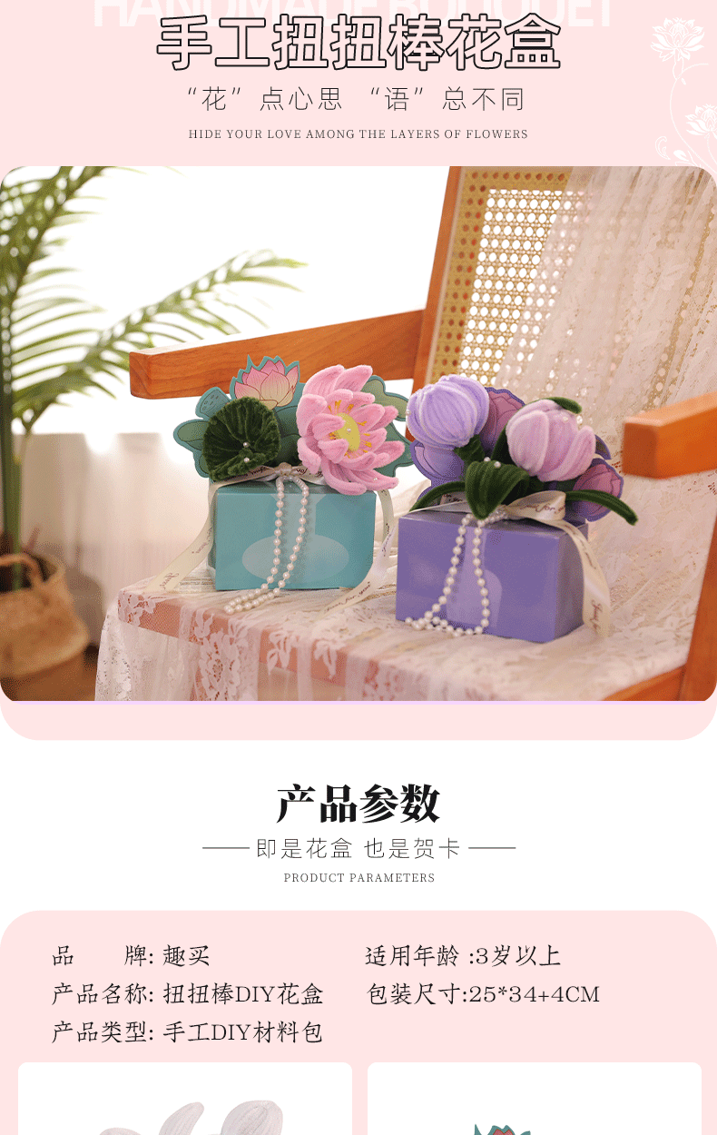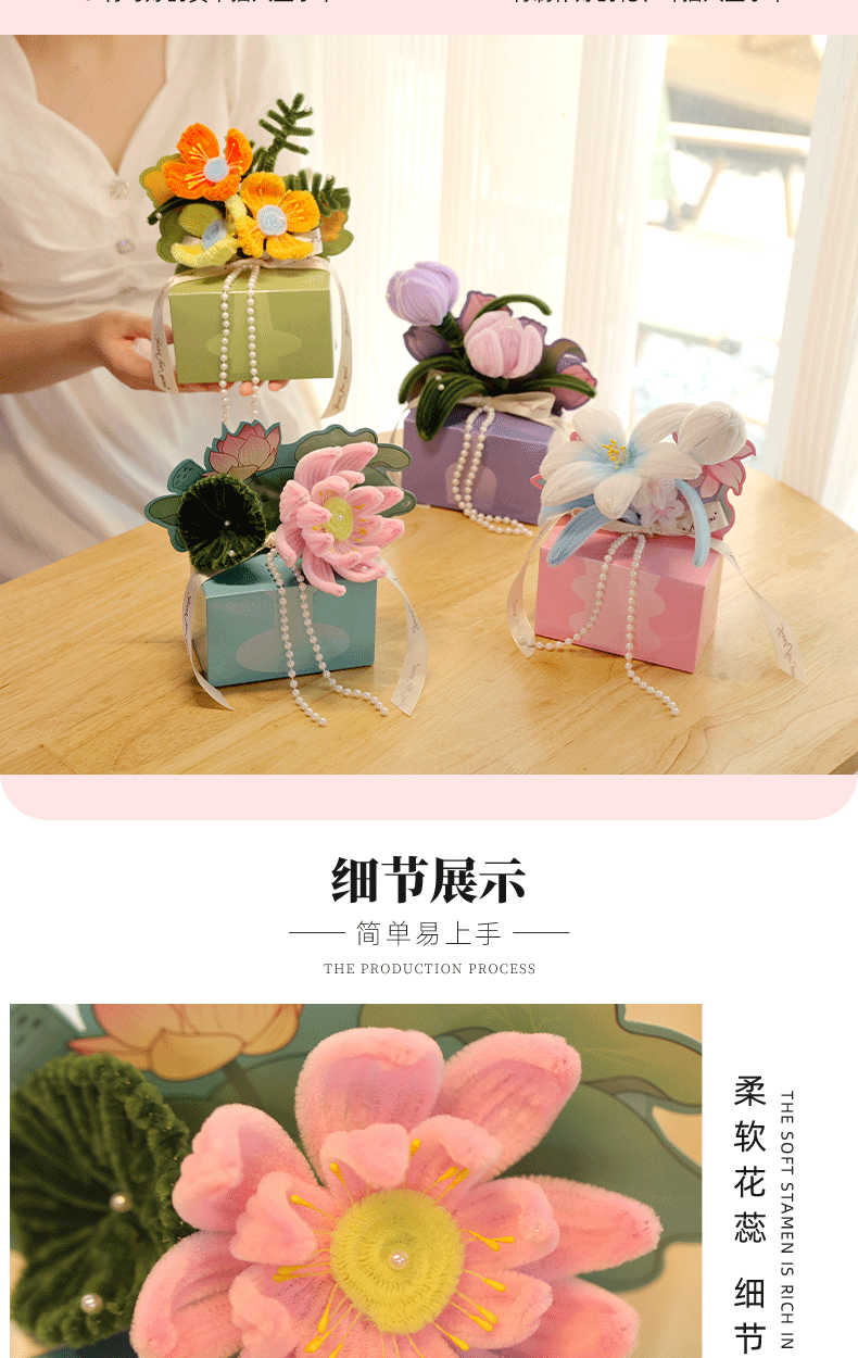 扭扭棒DIY花盒 教师节快乐礼物 花束活动礼物 儿童益智DIY材料包 是花盒也是贺卡