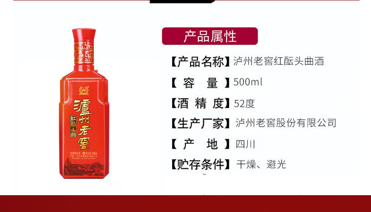 泸州老窖 红酝头曲 500ml 52%vol 浓香型白酒