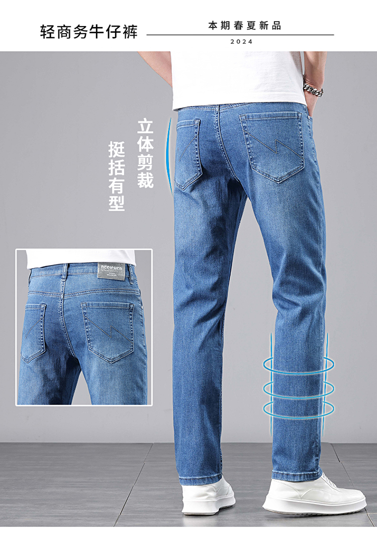 赤兔嗨购男装宽松直筒弹力不束缚牛仔裤2024年秋冬新款水洗长裤宽腿