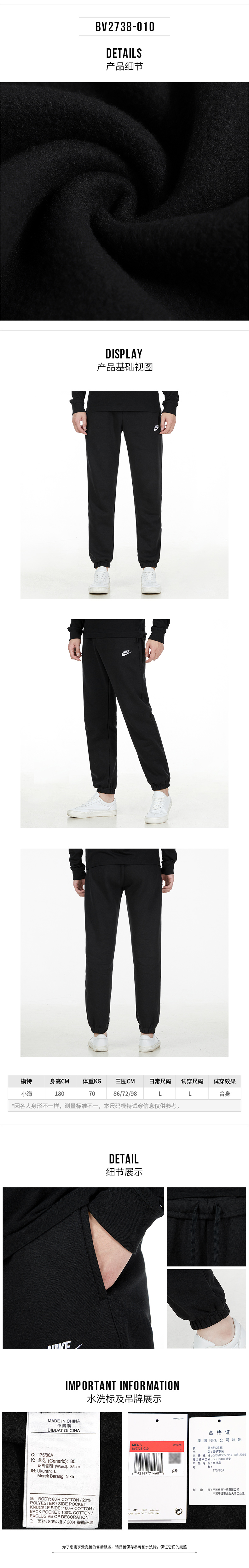 耐克 21冬季新款JORDAN系列加绒保暖针织毛圈内里棉质卫裤收口防风休闲小脚裤子BV2738-010