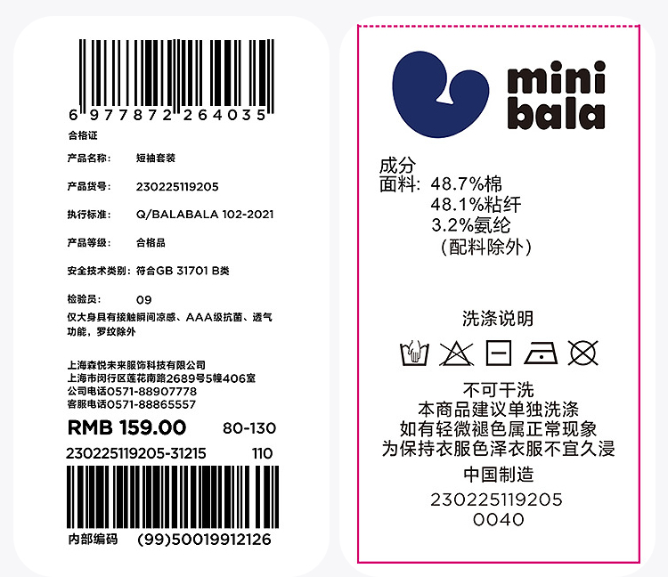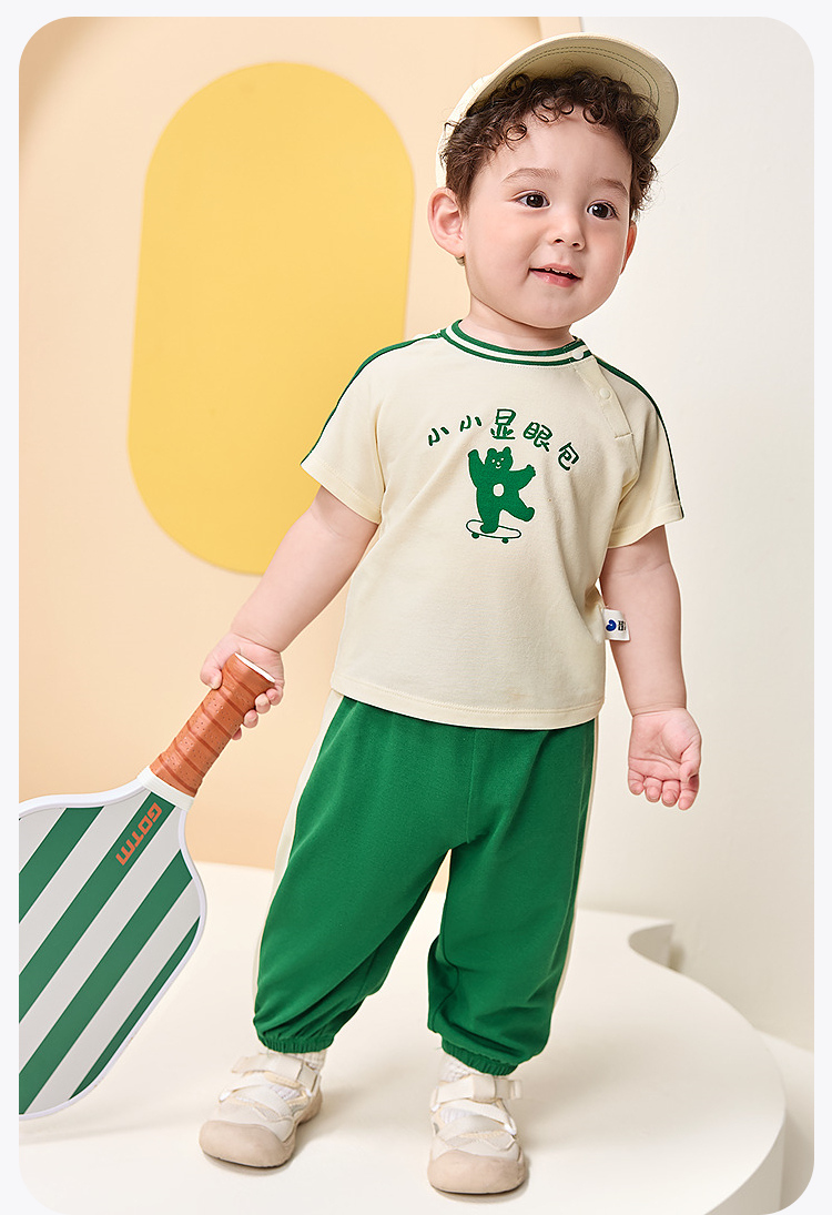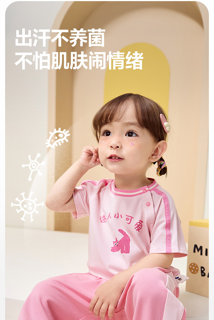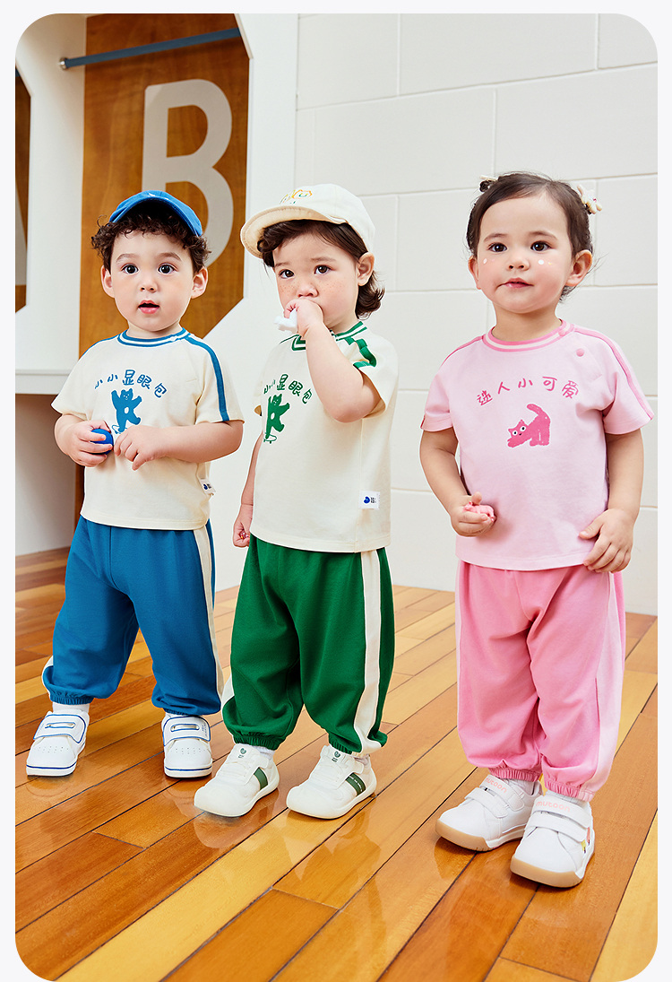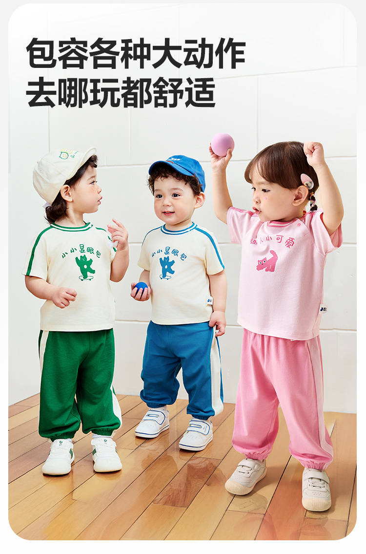 【凉感抑菌】迷你巴拉短袖套装男女童宝宝运动学院风短袖长裤