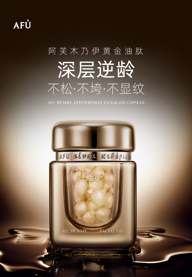 【AFU】阿芙木乃伊黄金油肽抚纹胶囊精华油*42粒送同款15粒*3