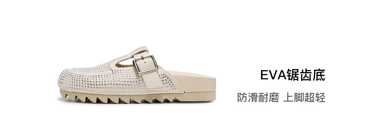 lost in echo2025春夏新款仿麂皮手工烫钻玛丽珍勃肯拖鞋一脚蹬女