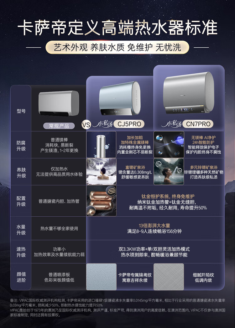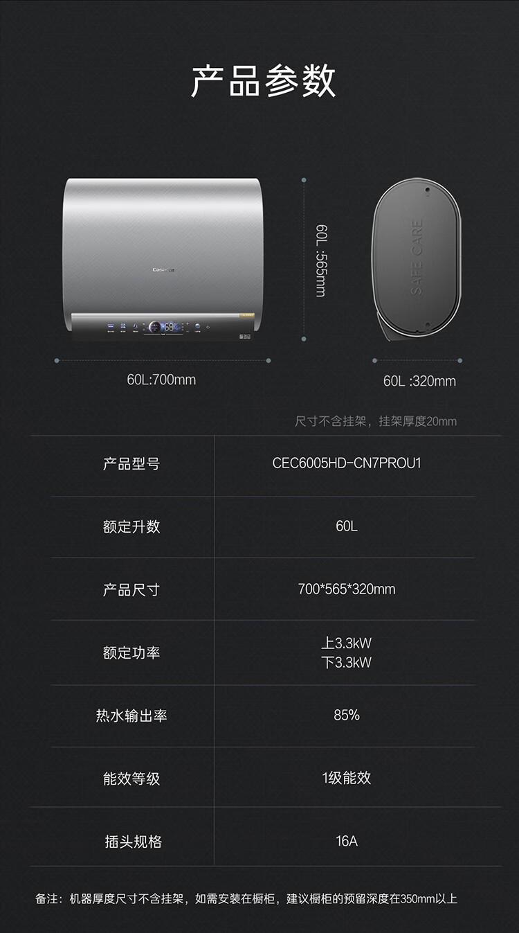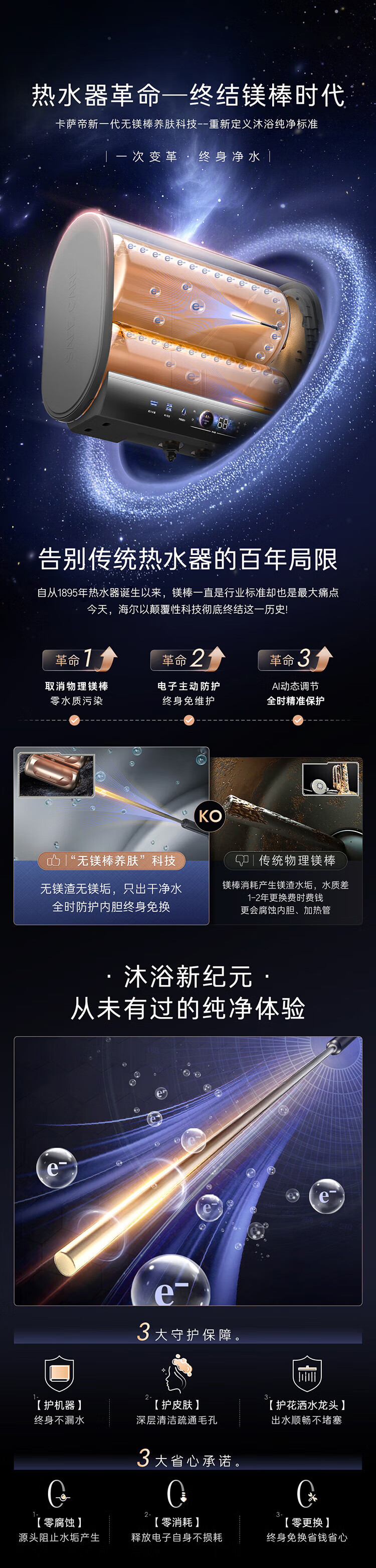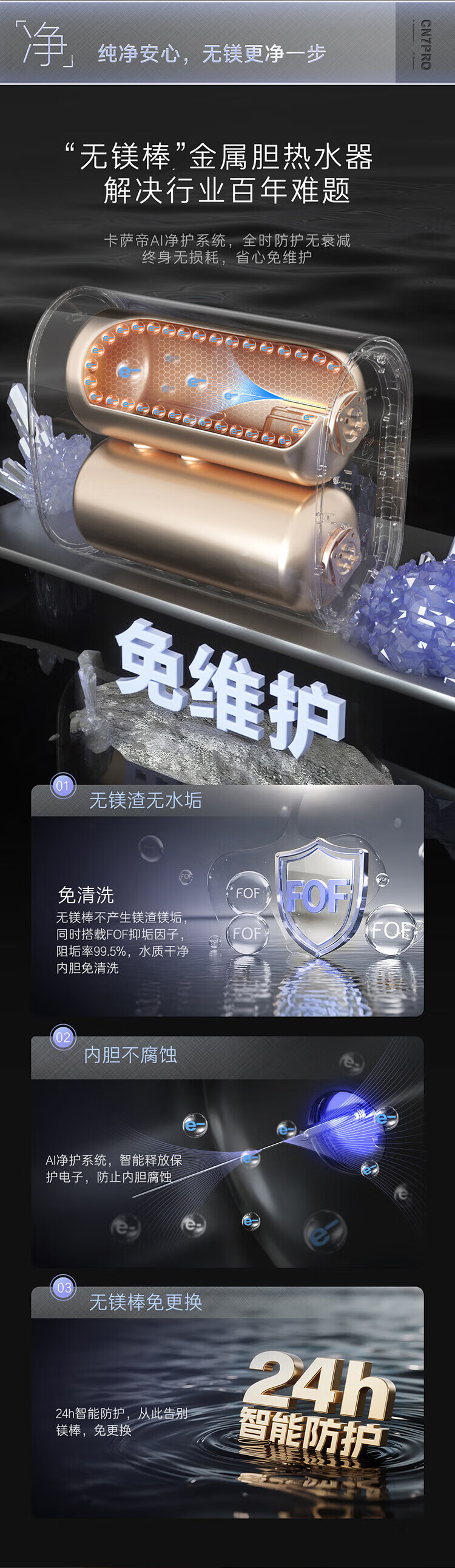 卡萨帝(Casarte)无镁棒60升电热水器 行业首创无镁棒无水垢 一级能效 CEC6005HD-CN7PROU1