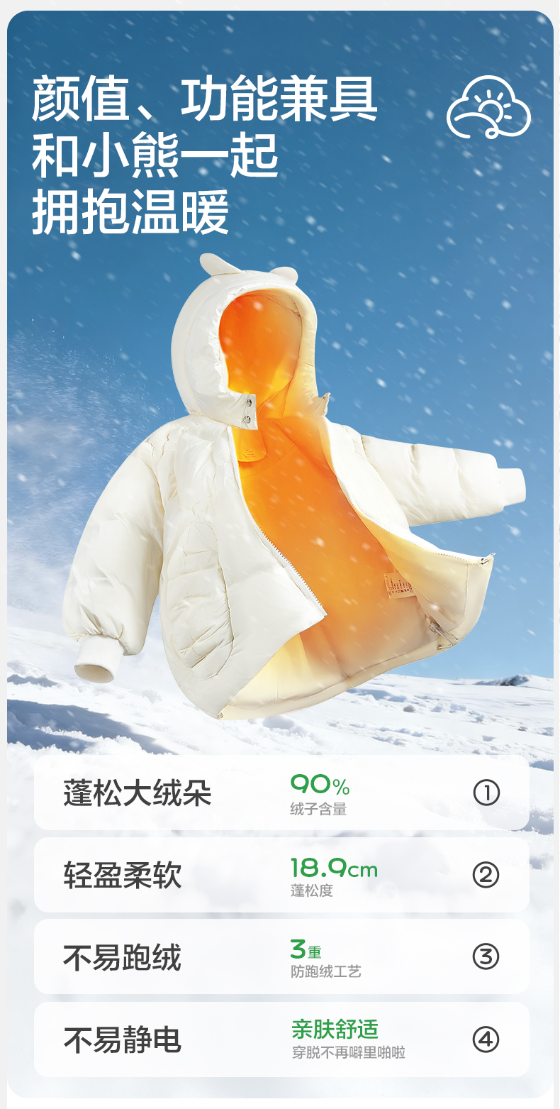 KK树儿童羽绒服90白鸭绒宝宝轻薄款羽绒外套男童女童冬季2025新款暖暖熊羽绒服