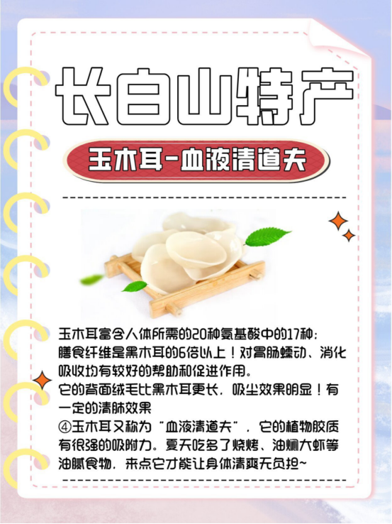 白玉木耳,口感脆爽 长白山脚下特有的高原气候 充足的阳光照射,造就了这样的好物! ➡白玉木耳功效: 补血,减少血液凝结,润肺,化解结石等 玉木耳背面的毛中含有丰富的多糖物质 具有较高的抗癌活性 滋阴壮阳、清肺益气、降血脂、降血浆胆固醇 抑制血小板聚集等诸多特殊疗效 怪不得在东方甄选上架3️⃣分钟就抢光!