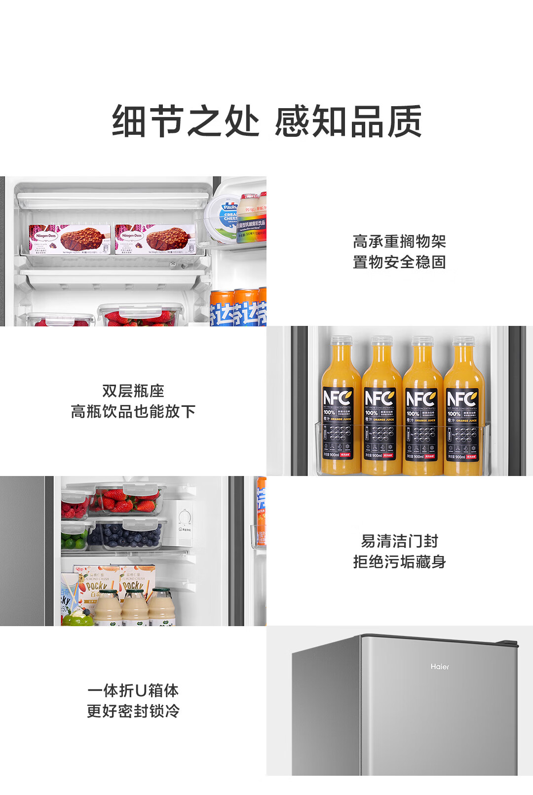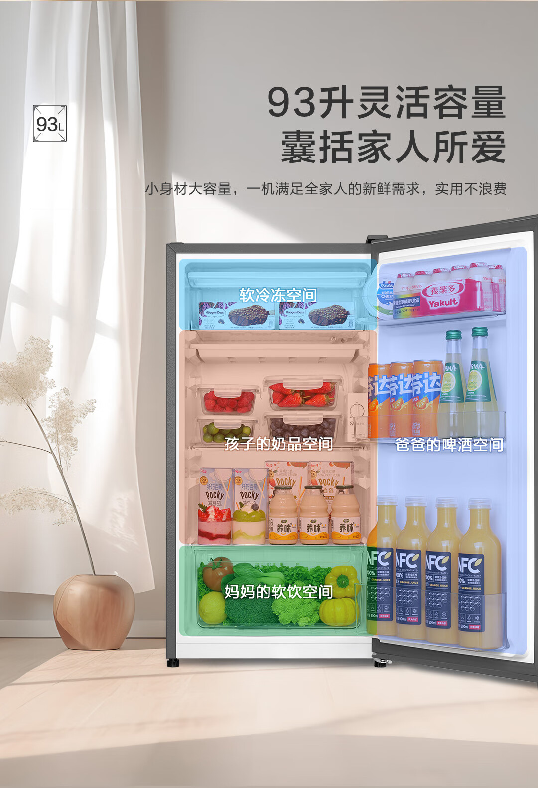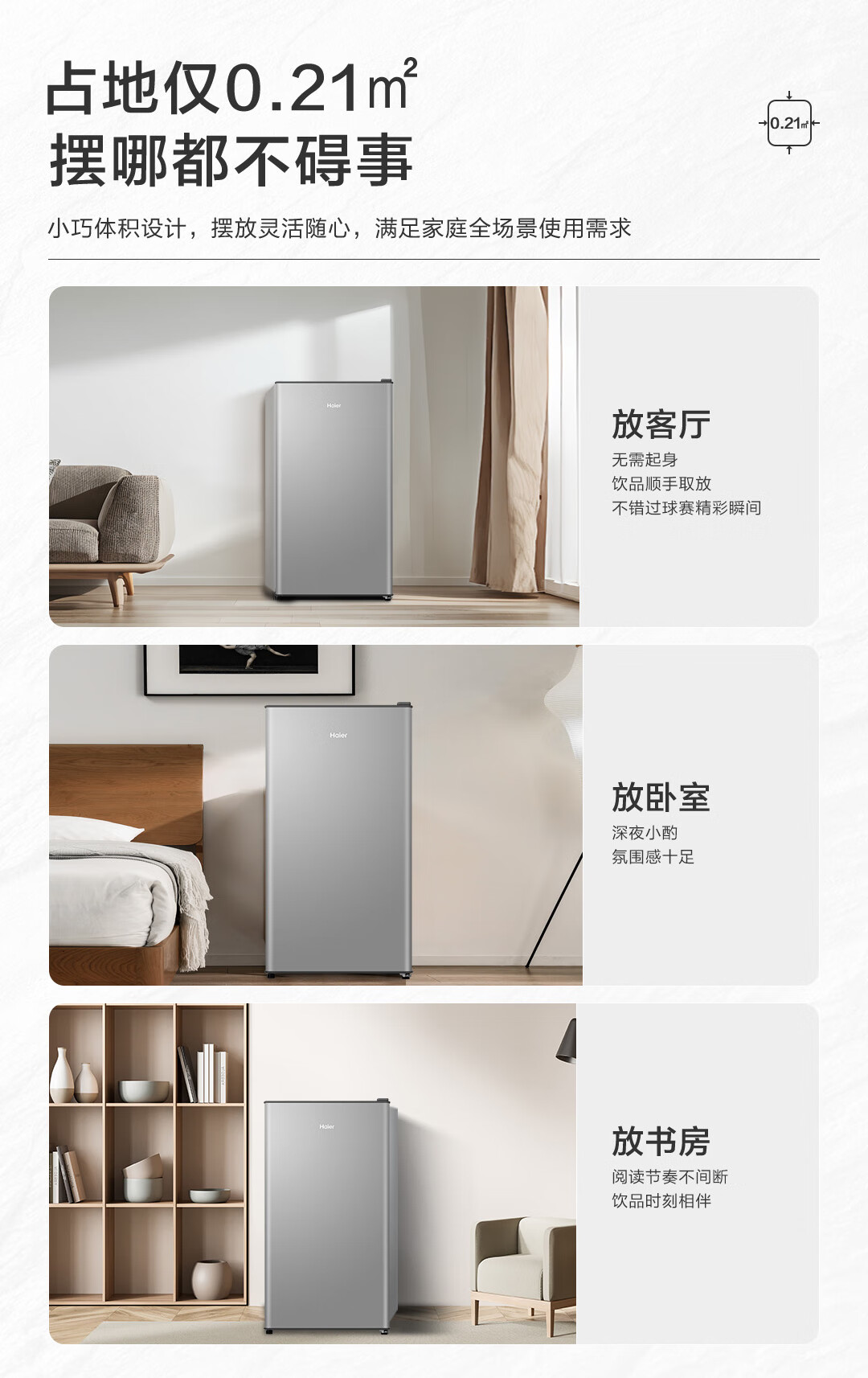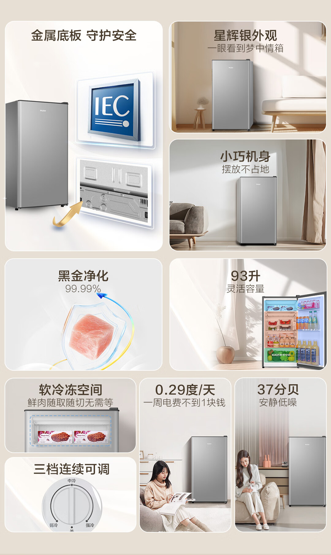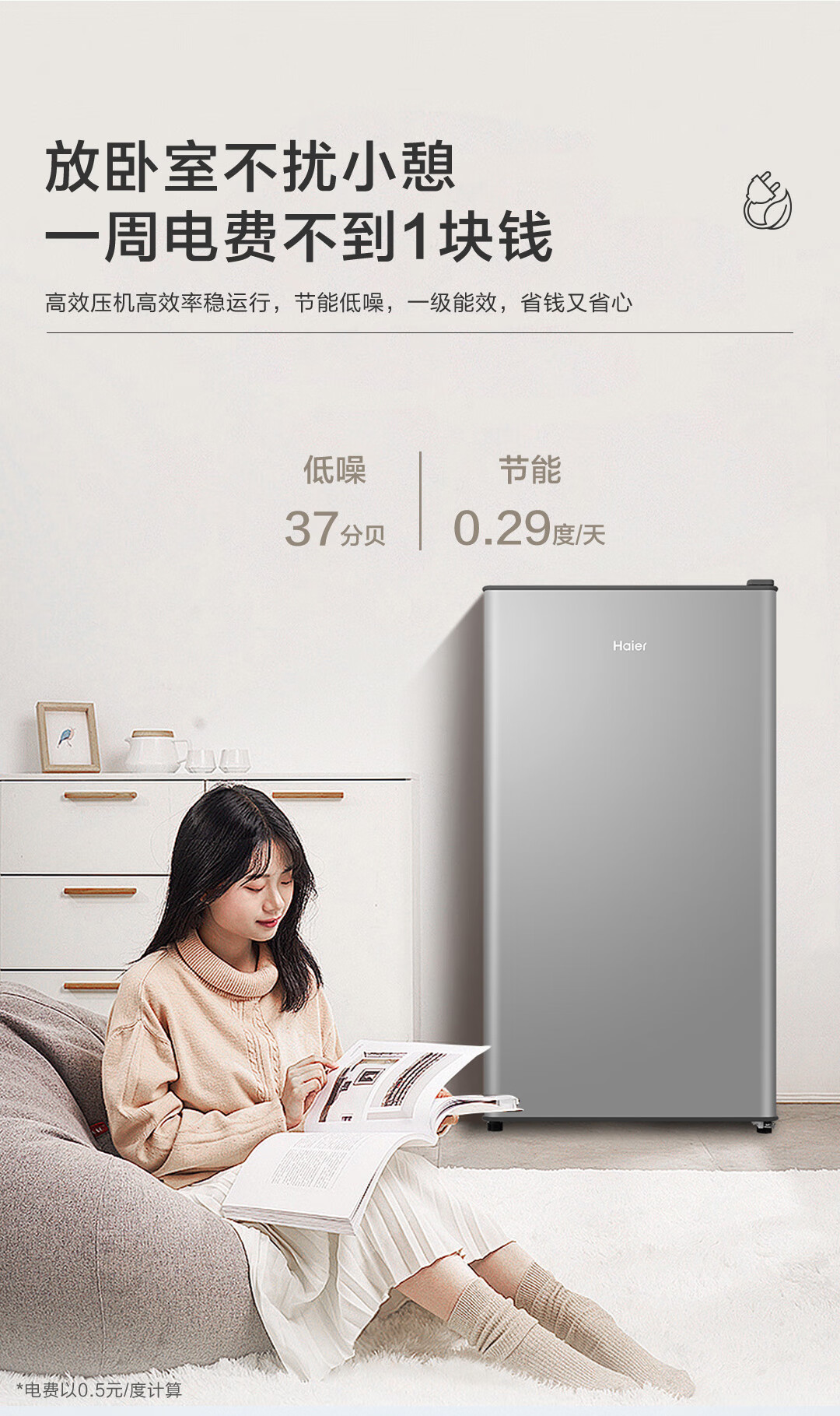 海尔(Haier)93升单门保鲜小冰箱小户型迷你家用租房宿舍办公室一级能效节能