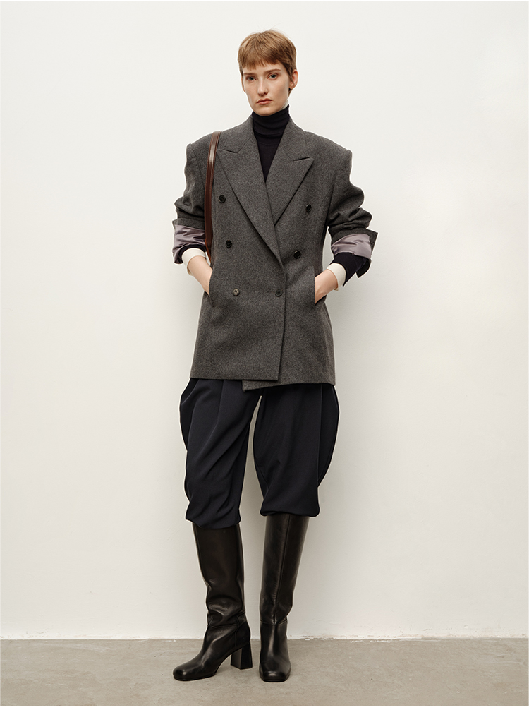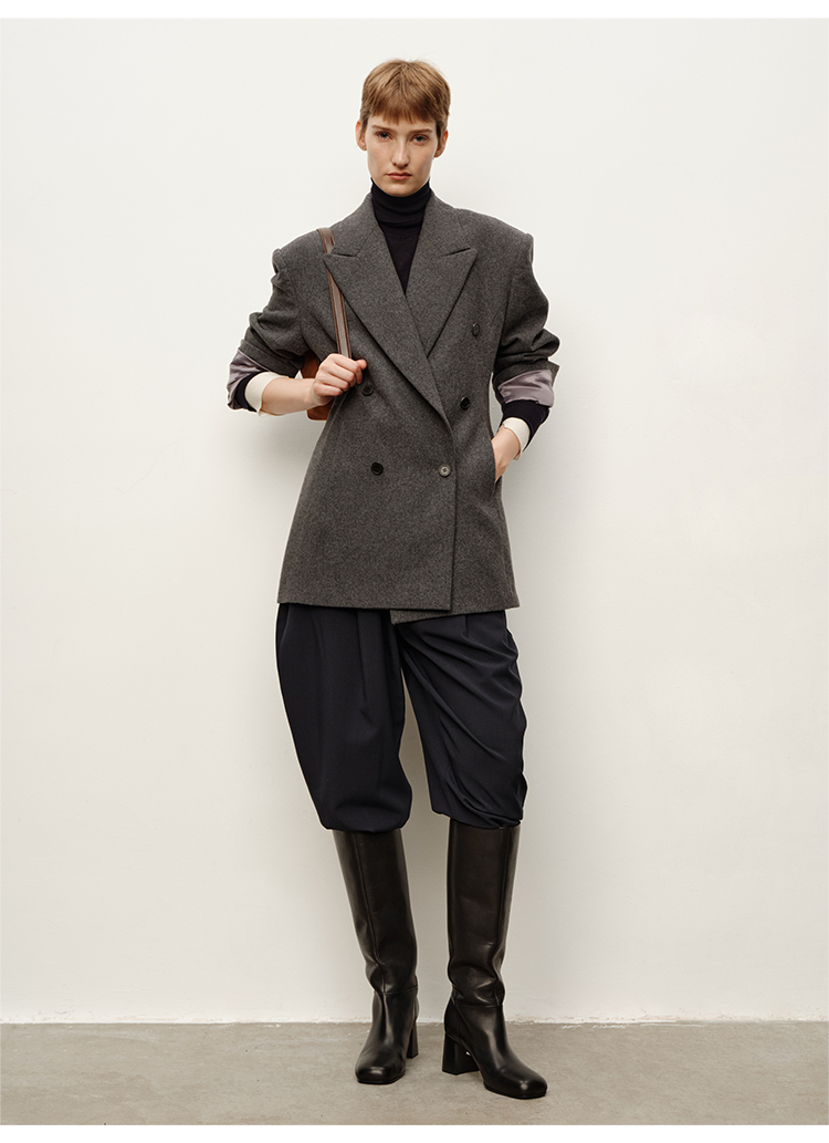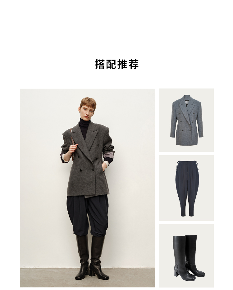 HIDEMI夜灰色简约不对称设计感一粒扣阔腿裤
