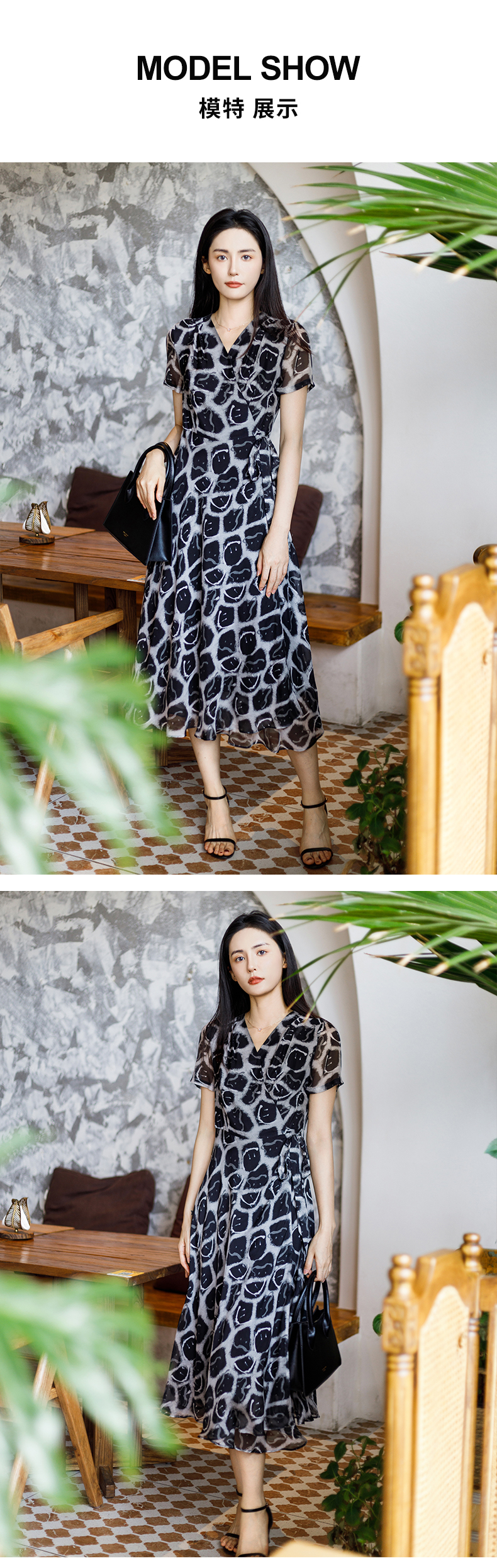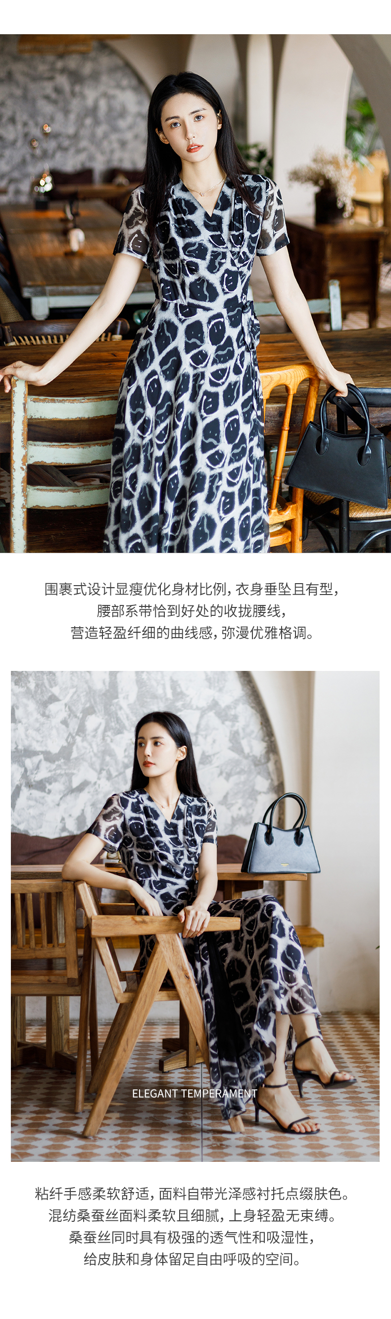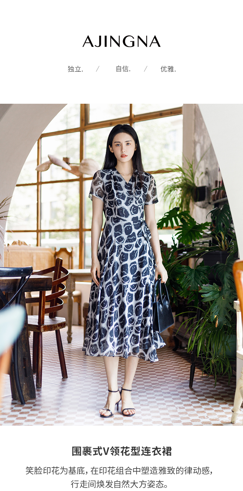 【商场同款】阿菁娜2024夏季新款围裹式V领花型连衣裙A30X112099