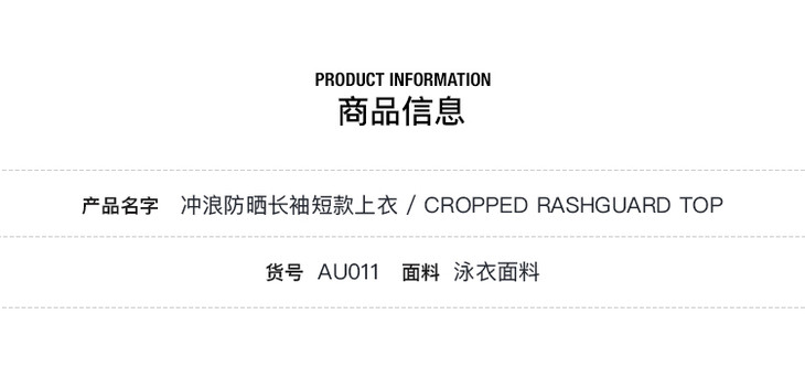 冲浪防晒长袖短款上衣CroppedRashguardTop
