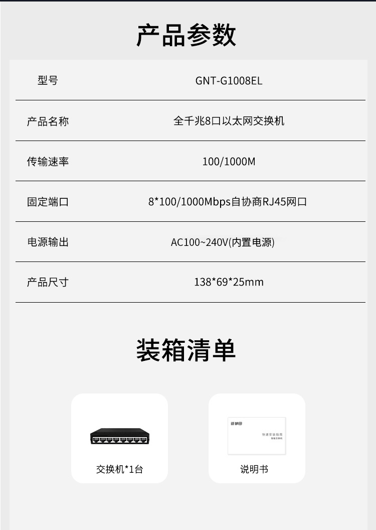 桢田8口全千兆交换机塑铝外壳G1008EL