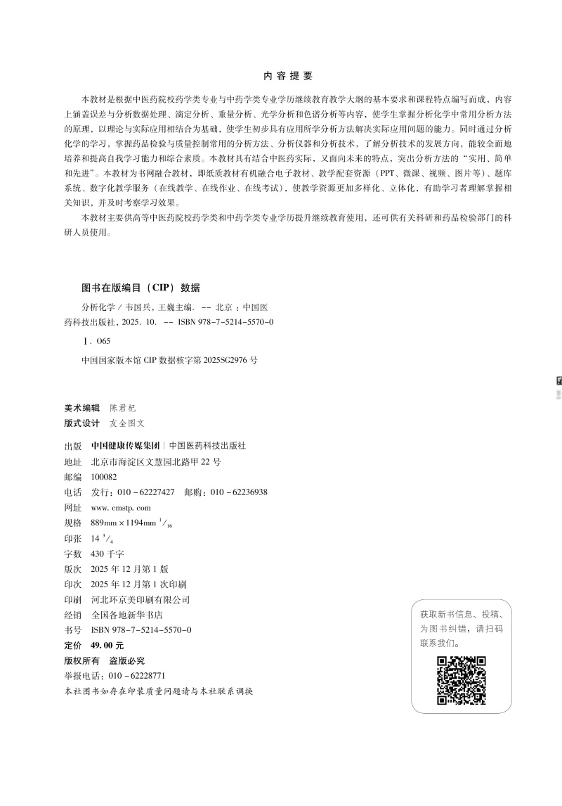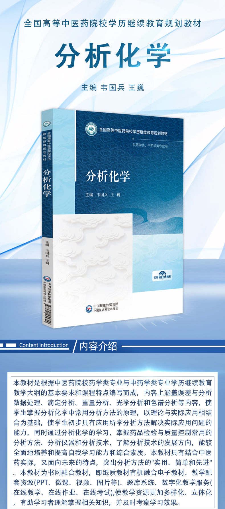 分析化学 高等中医药院校学历继续教育教材 韦国兵 王巍 供高等中医药院校药学类专业等学历提升继续教育使用 中国医药科技出版社