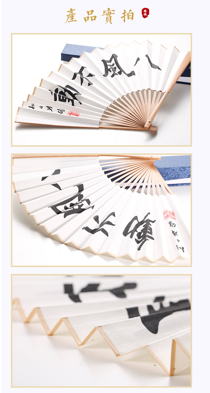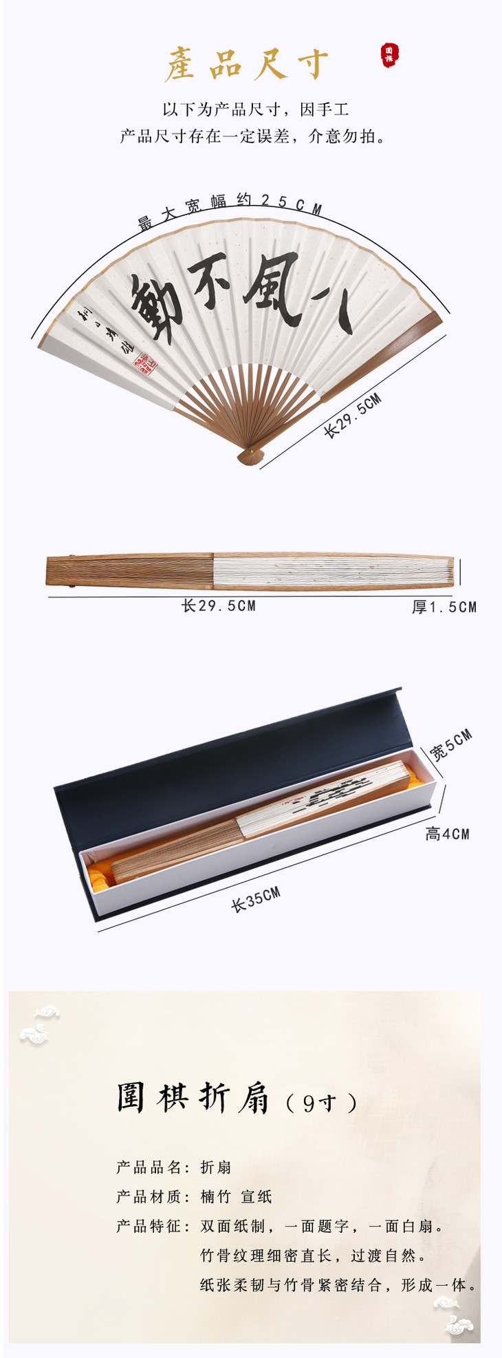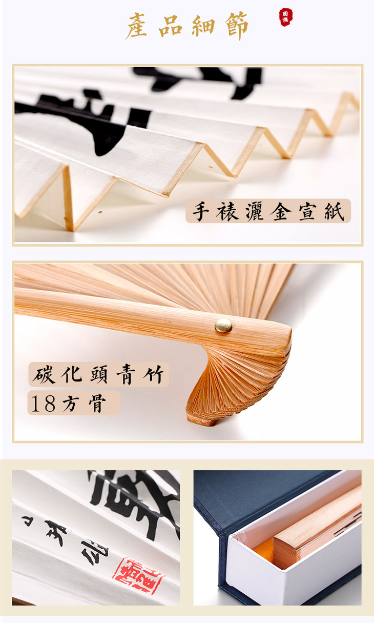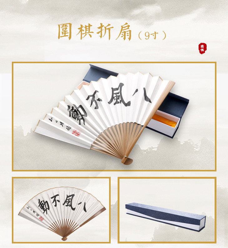 正本棋道围棋折扇9寸碳化竹青头洒金宣纸18方骨