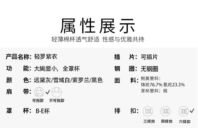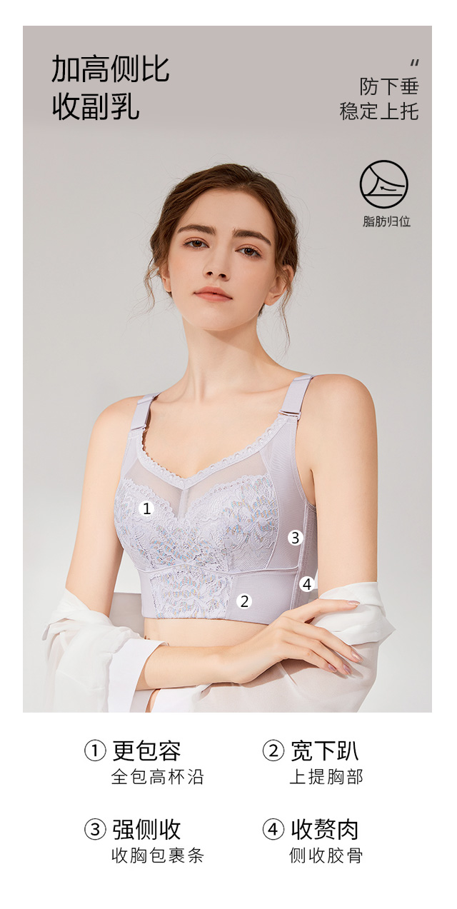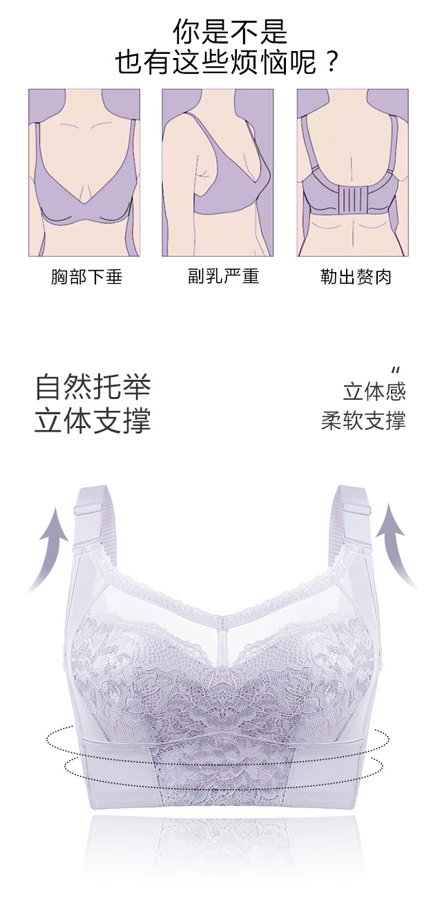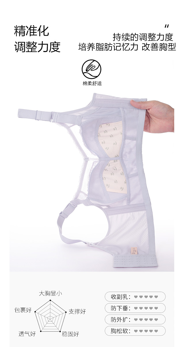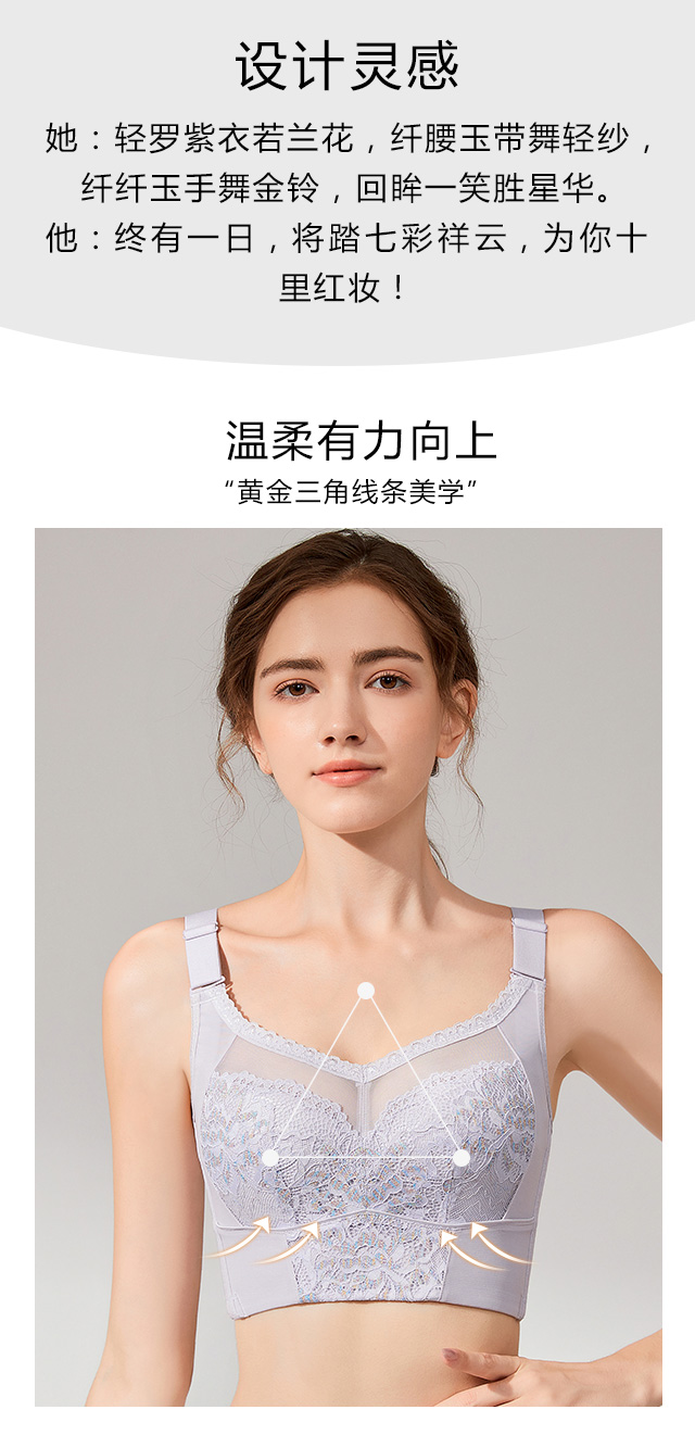 大胸显小,全罩杯,无钢托,轻罗紫衣调整型文胸