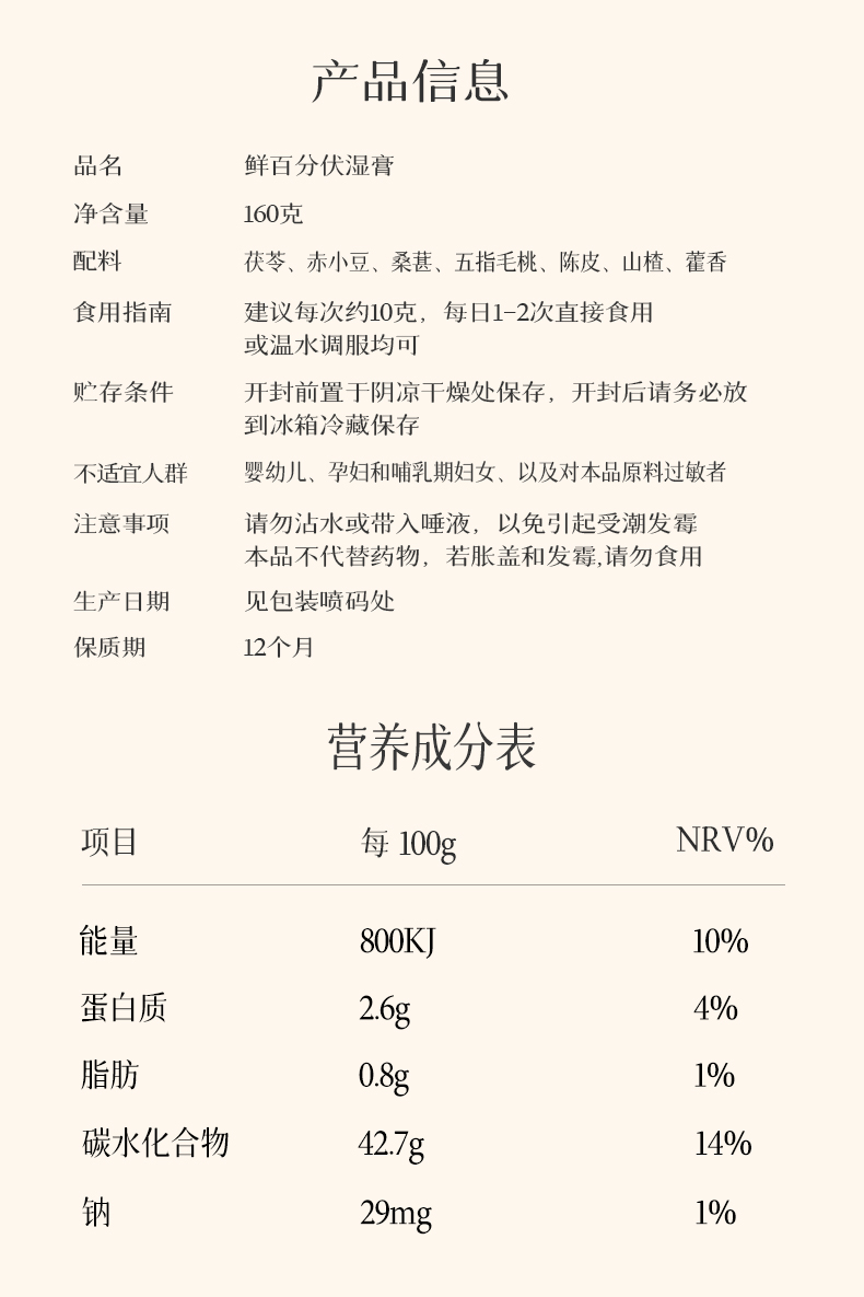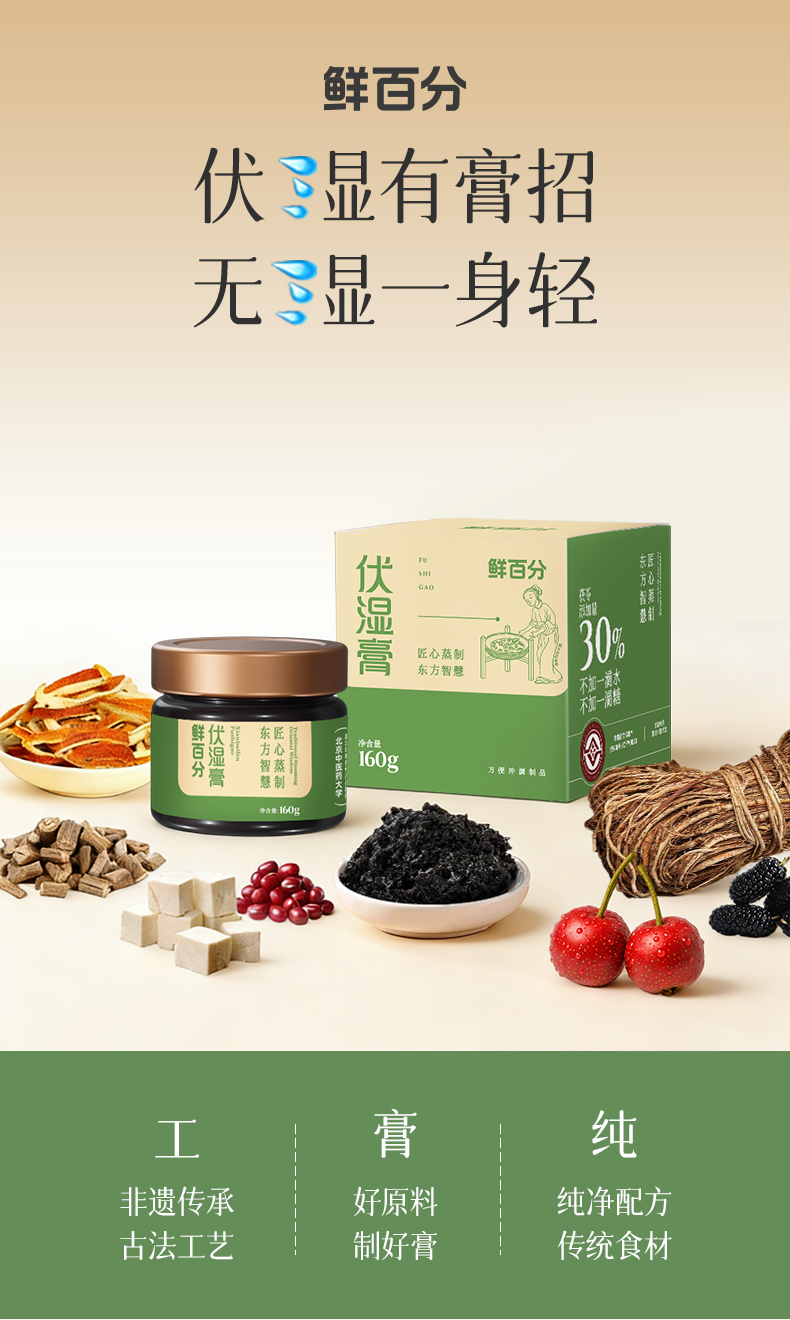【甄选】鲜百分茯湿膏真材实料匠心熬制精心配比160g/罐