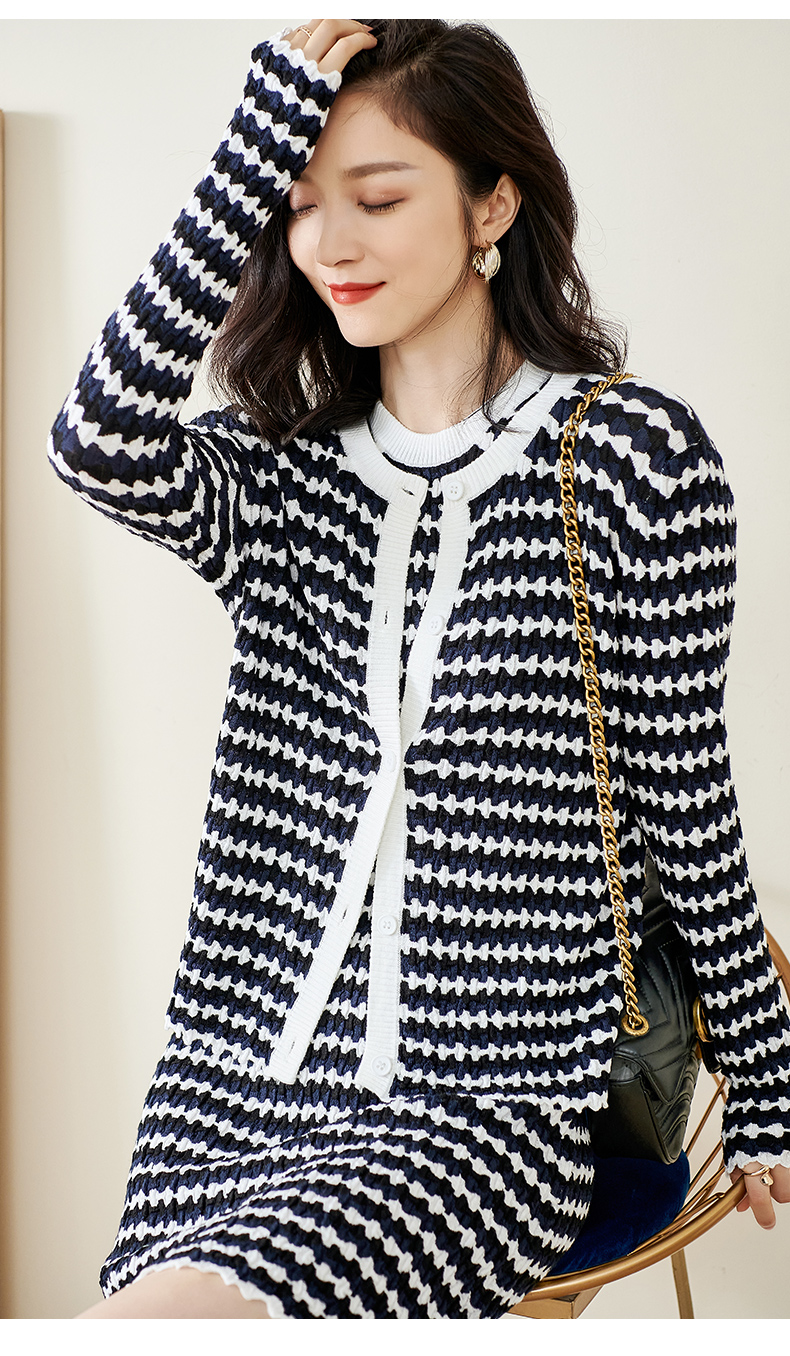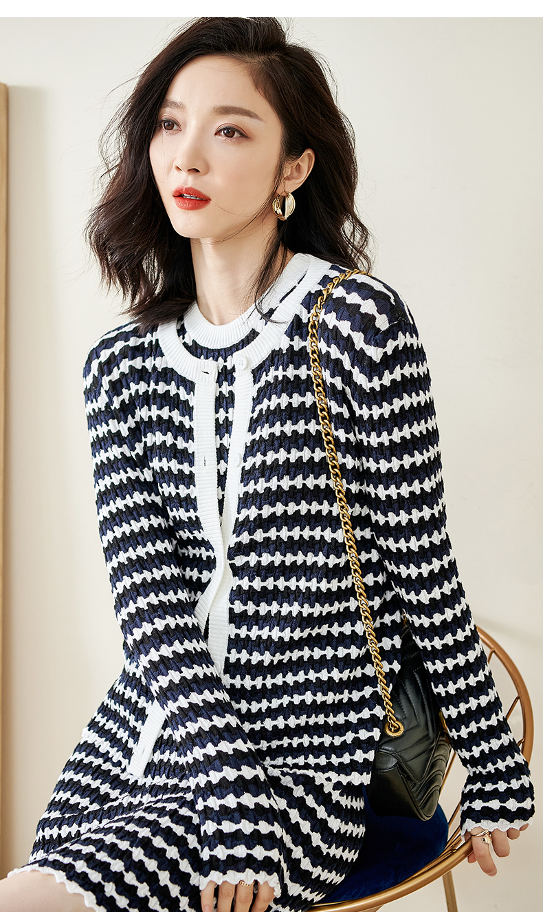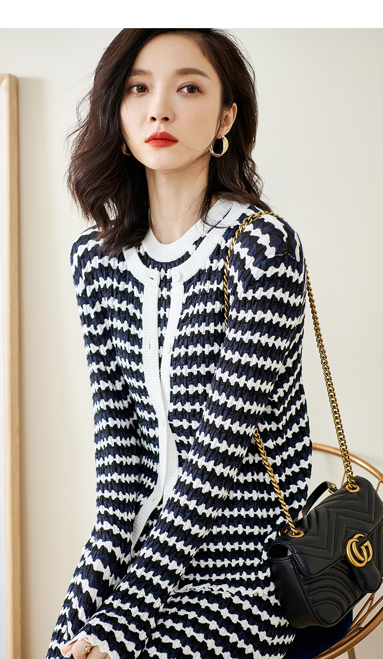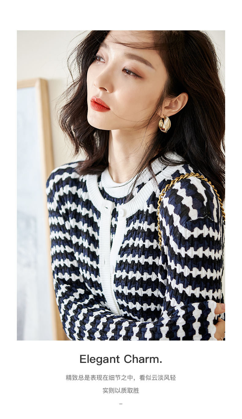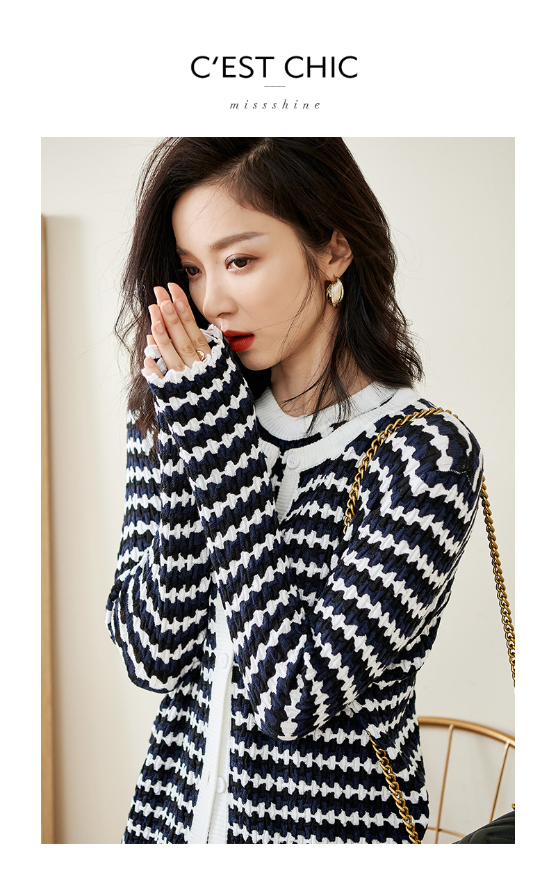剩S/L 米思阳撞色针织开衫春秋新款修身外搭ins潮流毛衣女外套1322